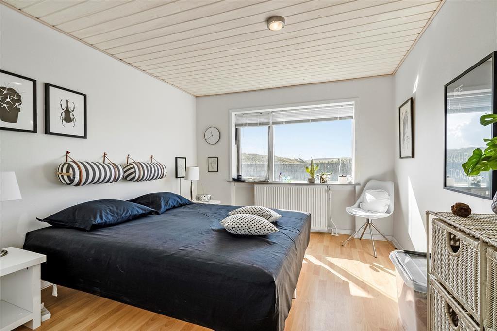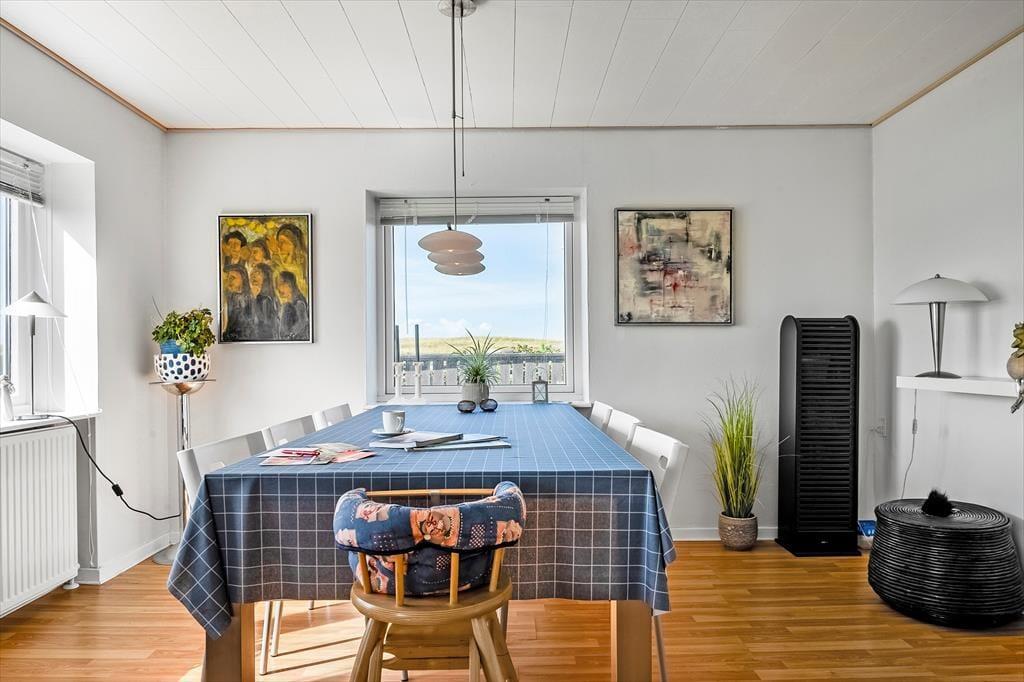 Das Haus verfügt über einen schönen Balkon, von dem aus Sie den Panoramablick auf Fjord und Meer genießen können. Hier ist es ideal, den Tag mit einer Tasse Kaffee im kleinen Cafésitz oder am Abend mit einem Glas Wein zu beenden, während die Sonne hinter den Dünen untergeht. Der Balkon schenkt Ihnen ein kleines privates Refugium unter freiem Himmel, wo Sie die wechselnden Stimmungen der Natur hautnah erleben können.