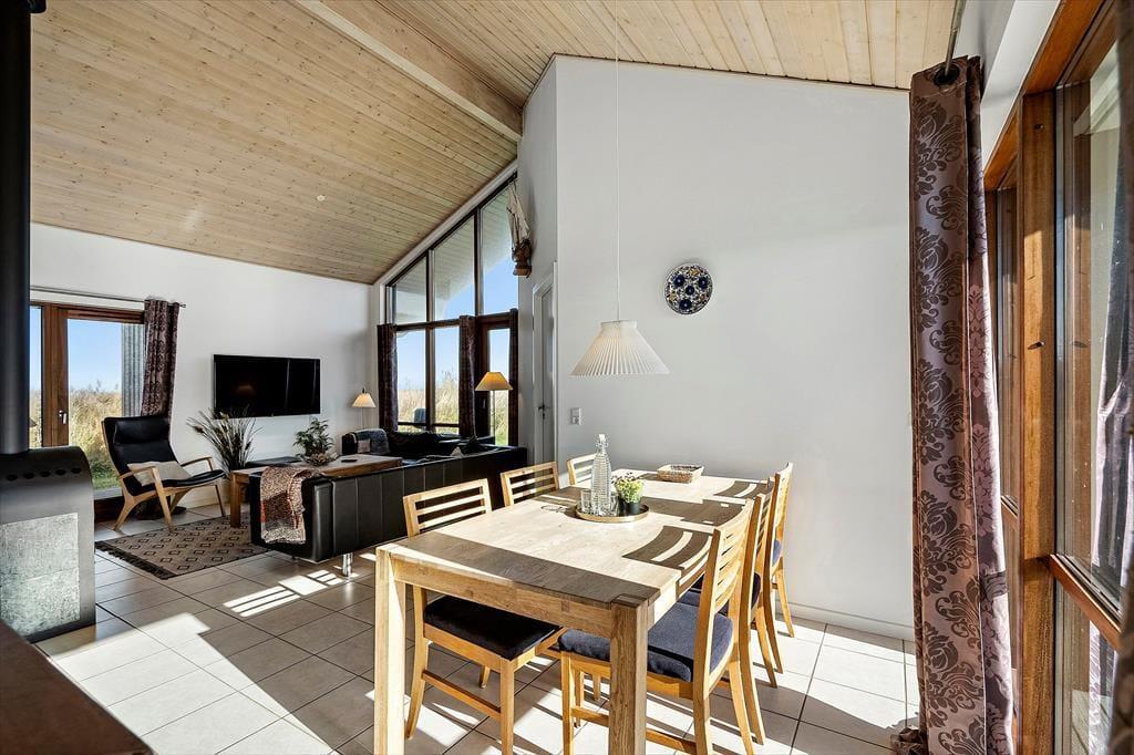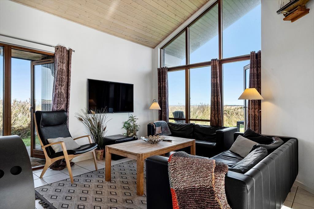 Die schöne Terrasse des Hauses lädt zu gemütlichen Stunden unter freiem Himmel ein. Lehnen Sie sich zurück und lassen Sie den Blick über den fantastischen Panoramablick auf den Nissum Fjord schweifen. Die herrliche Natur ringsum ist ein Erlebnis für sich – ob mit einer Tasse Kaffee in der Hand oder beim Beobachten des Sonnenuntergangs. Und da die Nordsee nur etwa 500 Meter entfernt liegt, ist ein Ausflug an den Strand ideal, um die echte westjütische Natur hautnah zu erleben.