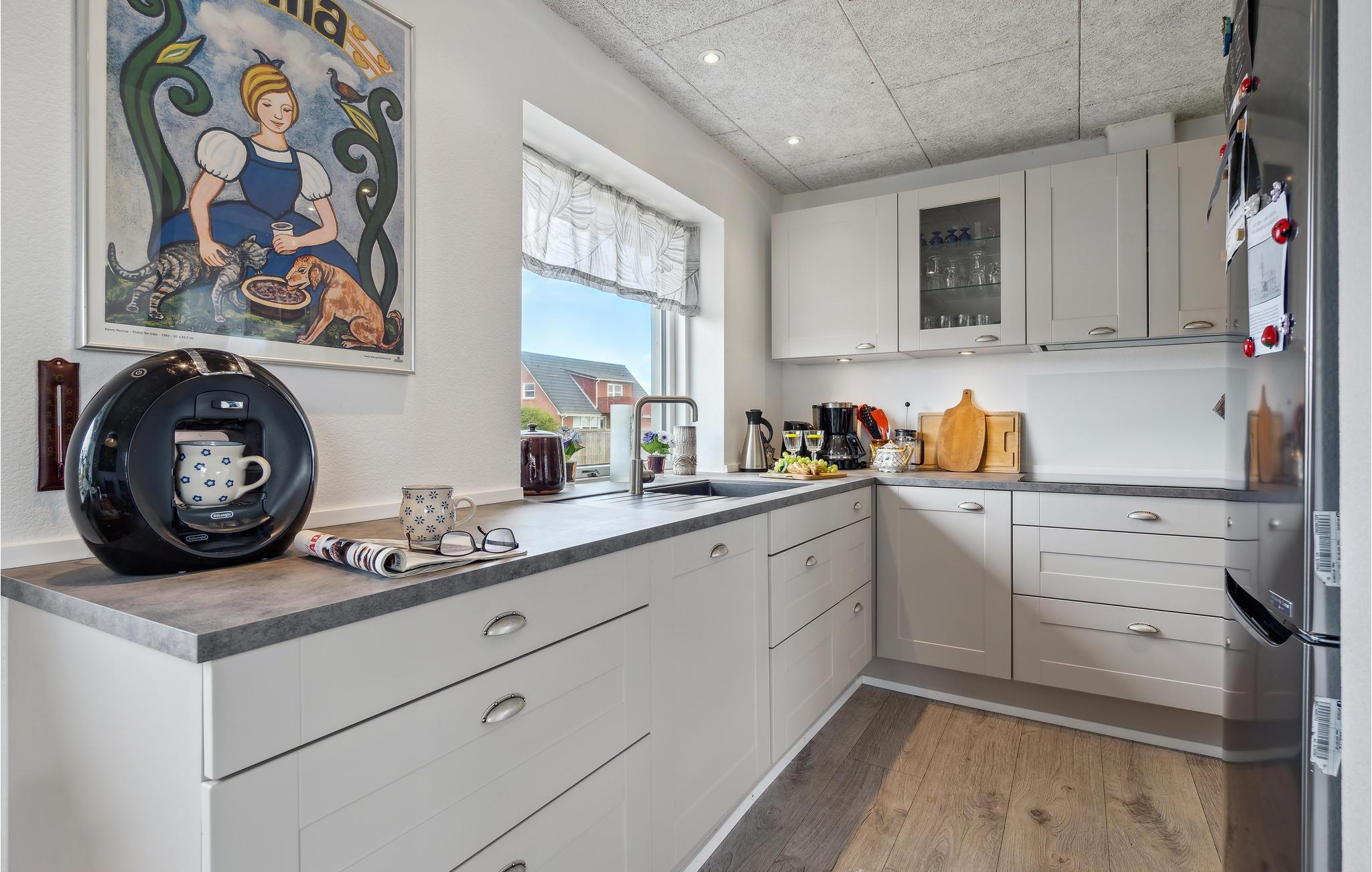 Willkommen in diesem schönen Haus, das Sie nicht weit vom Strand erwartet. Genießen Sie eine unvergessliche Zeit mit der Familie, die hellen Räume erhalten durch die Einrichtung mit viel Holz einen warmen Ausdruck und laden zum Erholen ein. Speisen Sie mit schönem Blick ins Freie und verbringen Sie gemütliche Abende am Kaminofen.