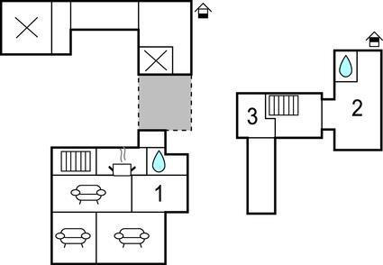 Badezimmer (nr. 1) - WC. Warmes und kaltes Wasser. Dusche