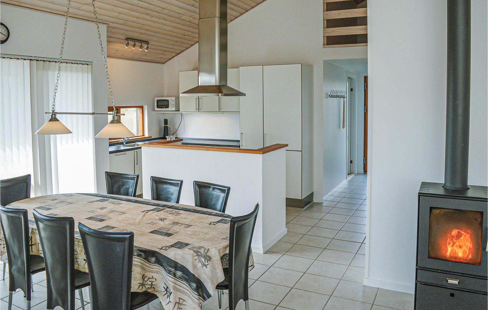 Am Rande der gemütlichen Hafenstadt Thorsminde liegt dieses Ferienhaus in Gesellschaft von anderen Ferienhäusern im gleichen Stil. Sie bilden eine kleine Ferienhaussiedlung. Im Haus gibt es drei Schlafzimmer, einen Zwischenboden und eine helle Küche, die in offener Verbindung mit dem Wohnzimmer mit Kaminofen liegt. Das eine der insgesamt zwei Badezimmer ist mit Whirlpool und Sauna ausgestattet, so dass Sie Ihren privaten Wellnessbereich haben.