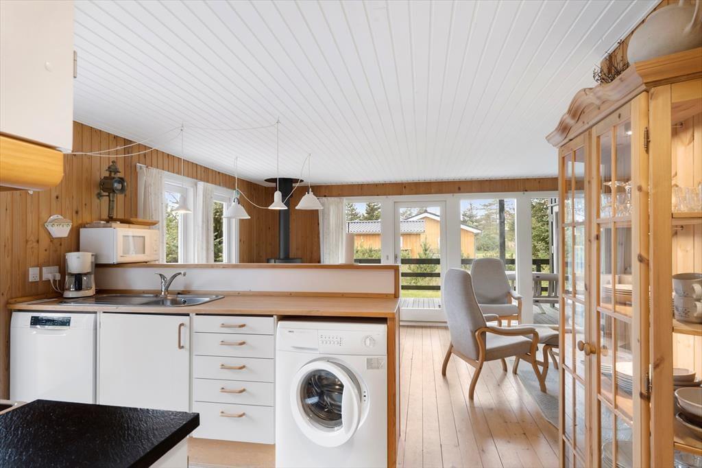 Dieses kleine, aber sehr gut gepflegte Ferienhaus bietet Platz für sechs Personen, das sich für Urlaube mit Kindern oder einer ruhigen Zeit zu zweit empfiehlt. Warme, gemütliche Einrichtung mit schönen und bequemen Möbeln sowie einem Kamin, der schnell eine angenehme Atmosphäre verbreitet. Die offene Küche befindet sich zentral im Haus und so können Sie trotz unterschiedlicher Aktivitäten Zeit zusammen verbringen. Drei Schlafzimmer: eins mit Doppelbett, das zweite mit zwei Einzelbetten und das letzte mit einem Etagenbett. Badezimmer mit Duschkabine. Das Haus ist ausgestattet mit Geschirrspülmaschine, Waschmaschine, Internet und Wärmepumpe. WLAN steht ebenfalls zur Verfügung - also denken Sie beim Packen unbedingt an Ihr Tablet oder Ihren Laptop. Die Zugangsdaten werden Ihnen am Anreisetag mit den Willkommensunterlagen ausgehändigt.