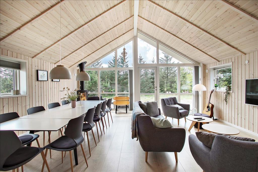 Freuen Sie sich auf einen Urlaub in einem Haus, in dem einfach alles funktioniert und die einfache und komfortable Einrichtung eine Augenweide ist. . Eines der tollen Details, die das luxuriöse Wohngefühl maßgeblich erhöhen, ist der attraktive, runde Whirlpool, der zusammen mit der Sauna im größeren der beiden Badezimmer liegt. Der Kaminofen, die offene Küchenabteilung und die riesige Fensterpartie am Giebel sind nur einige der Dinge, die Ihre Stunden im Wohnraum zu einem ganz besonders gemütlichen und behaglichen Erlebnis machen. Wer gerne aktiv ist wird sich mit Sicherheit im Aktivitätsraum des Hauses wohlfühlen, in dem unter anderem ein Billardtisch und eine PS4 für Spaß und Unterhaltung sorgen. Allabendlich begeben Sie sich in vier Schlafräumen zur Ruhe. Da der Aktivitätsraum im Übrigen auch mit einem Schlafsofa ausgestattet ist, beherbergt dieses traumhafte Urlaubsdomizil bis zu 10 Gäste.