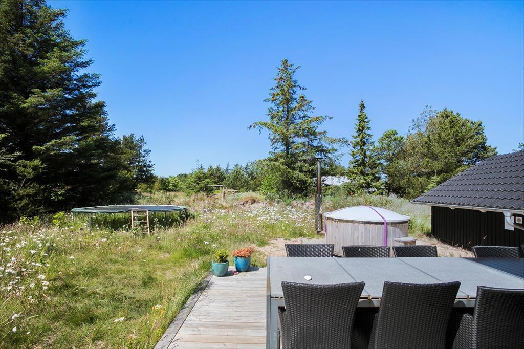 Das Ferienhaus befindet auf einem 1.648 m² großen Grundstück in guter Lage in einer Sackgasse. Während Sie Ihr Mittagessen in der Sommersonne genießen, geht es rundherum wunderbar ruhig und friedvoll zu. Sobald Ihre Kinder im Spielturm oder in der Sandkiste spielen, können Sie sich in aller Ruhe in der tollen Schwedischen Badetonne niederlassen und sich nach Herzenslust entspannen. Genau diese Badetonne ermöglicht Ihnen vollständige Entspannung mit direktem Kontakt zur Natur - bei wirklich jedem Wetter.