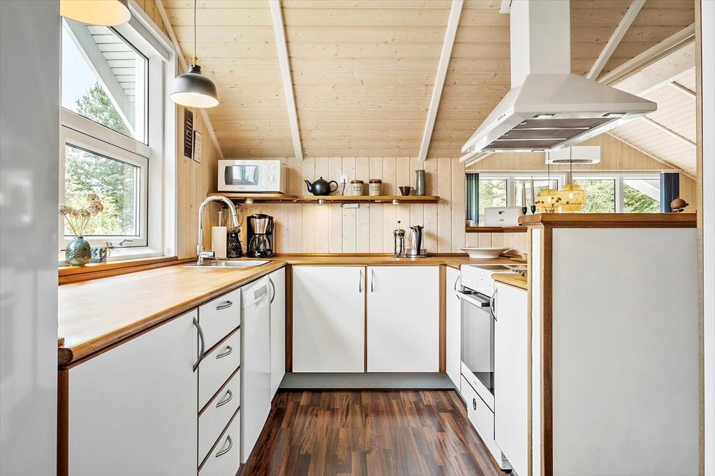 Dein Ferienhaus liegt ruhig platziert im Weg Tyttebærstien - einer Sackgasse mit kleinen Stichwegen, die an ein System aus kleinen Wegen und Pfaden angeschlossen ist. Dadurch könnt ihr euch problemlos in der Umgebung umherbewegen, mit dem Hund Gassi gehen und mit den Kindern zum guten Naturspielplatz im Waldgebiet Vester Thorup Klitplantage spazieren. Da dein Ferienhaus weniger als ein Kilometer von der rauschenden Nordsee trennt, werden tägliche Abstecher an den Strand garantiert auf eurem Urlaubsprogramm stehen. Dabei solltet ihr hin und wieder beim beliebten Kutteranlandeplatz von Thorup Strand vorbeischauen, an dem die Fischerboote bis heute in klassischer Manier an Land gezogen werden. Am Kutteranlandeplatz erwartet euch außerdem das Thorupstrand Fiskehus, das direkt am Wasser köstlichste Fischfrikadellen und andere Leckereien anbietet.