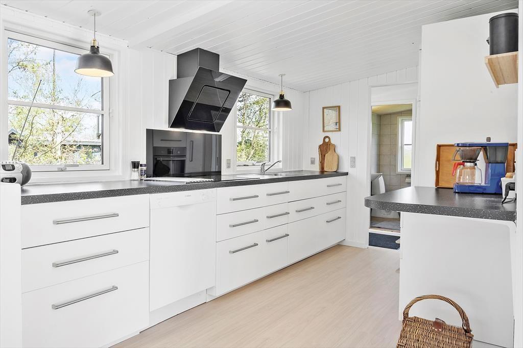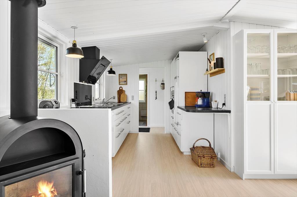 Das Ferienhaus wurde ursprünglich 1971 errichtet und 2024 wurden größere Renovierungsarbeiten durchgeführt. Entlang des Flurs befinden sich das Badezimmer und drei Schlafzimmer (Doppelbett, Doppelbett und ein Etagenbett). Eine Schiebetür trennt den Schlafbereich von Küche und Wohnzimmer. Die Küche und Wohnzimmer sind offen miteinander kombiniert und ergeben einen großen Raum, in dem sich zum Kochen, Essen, Karten o. ä. spielen getroffen wird oder einfach vor dem TV entspannt wird. Außerdem ist WLAN ist vorhanden. Das Haus verfügt über eine moderne Ausstattung, die den Aufenthalt so einfach und komfortabel wie gestalten: Geschirrspülmaschine, Waschmaschine, Wärmepumpe und ein zusätzliches Kinderbett sowie Hochstuhl für die kleinsten Urlaubsgäste. Falls Sie auf der Suche nach einer hervorragenden Lage, einem praktischen und gemütlichen Ferienhaus in Nordjütland sind, dann sind die Voraussetzungen hier perfekt.