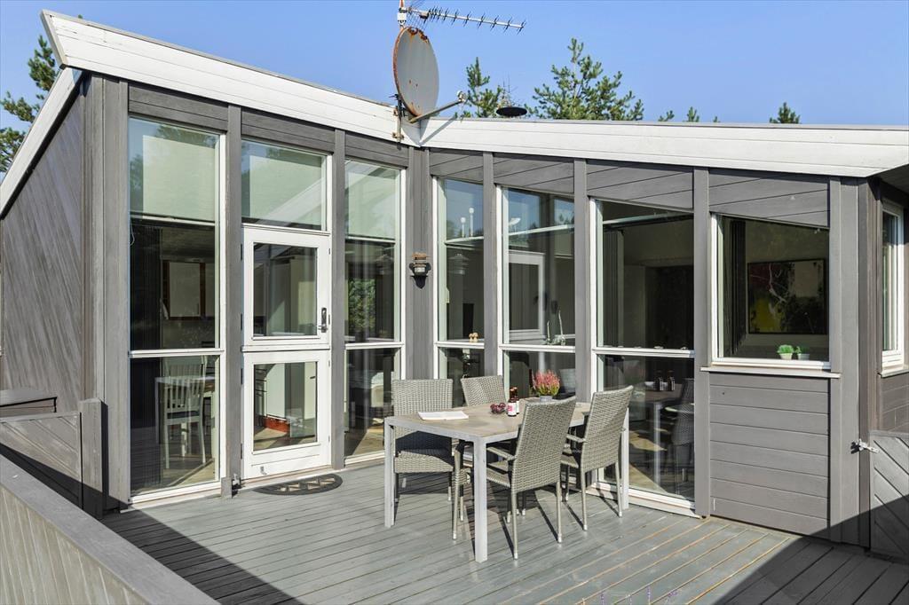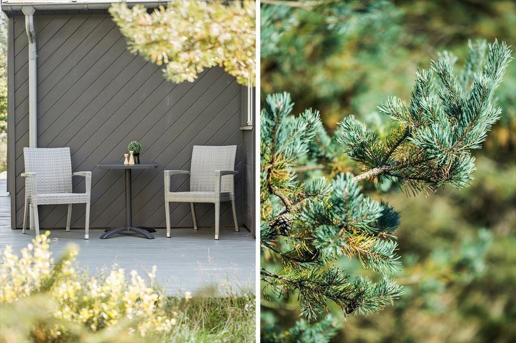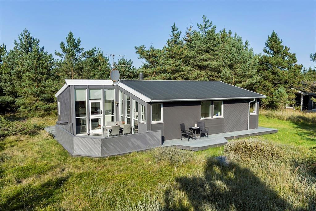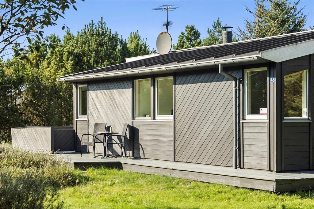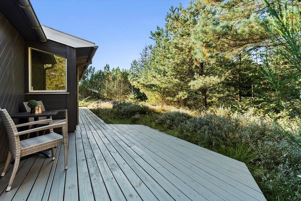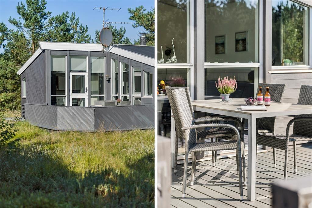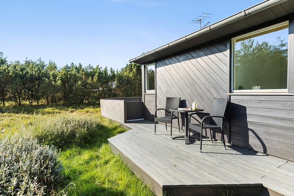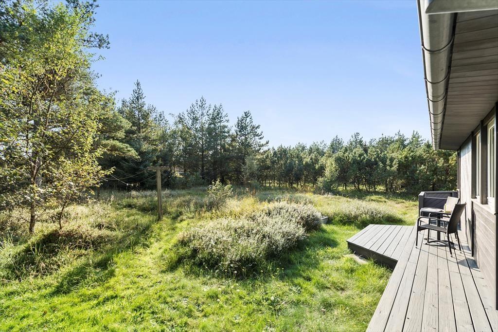 Das Ferienhaus liegt auf einem schönen und charmanten Naturgrundstück mit Bäumen, hohem Gras und kleinen Büschen. Rund um das Ferienhaus erstreckt sich eine Terrasse mit mehreren kleinen gemütlichen Ecken, und in der südwestlichen Ecke ist die Terrasse komplett abgeschottet. Es stehen gute Gartenmöbel, ein Grill, eine Sandkiste und ein Wäscheständer auf dem Grundstück zur Verfügung.