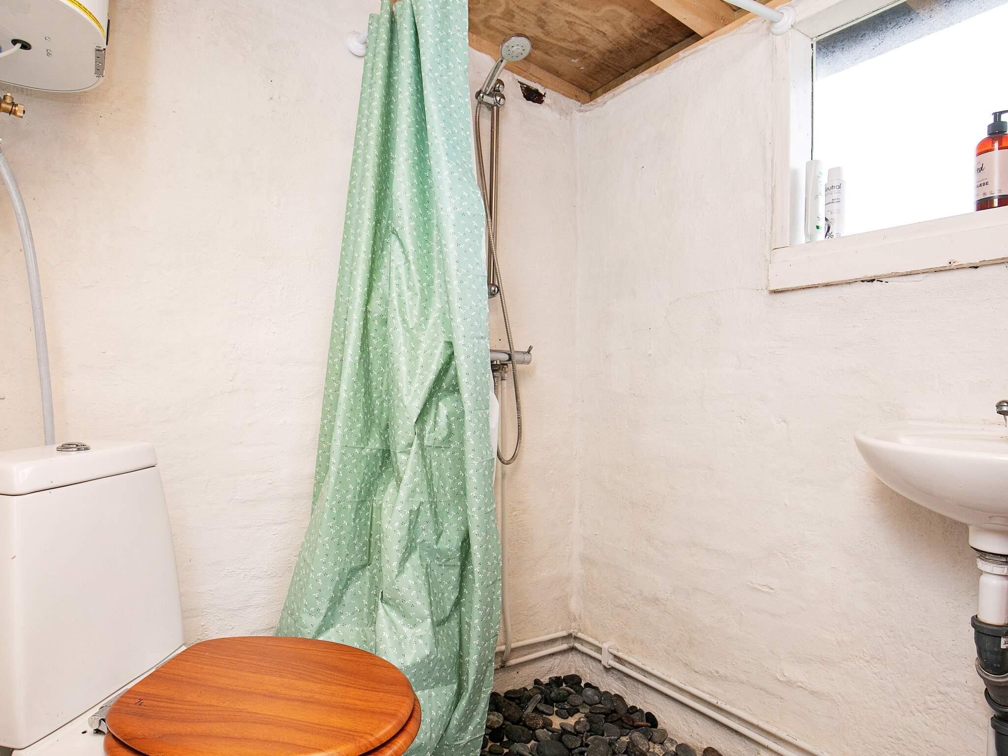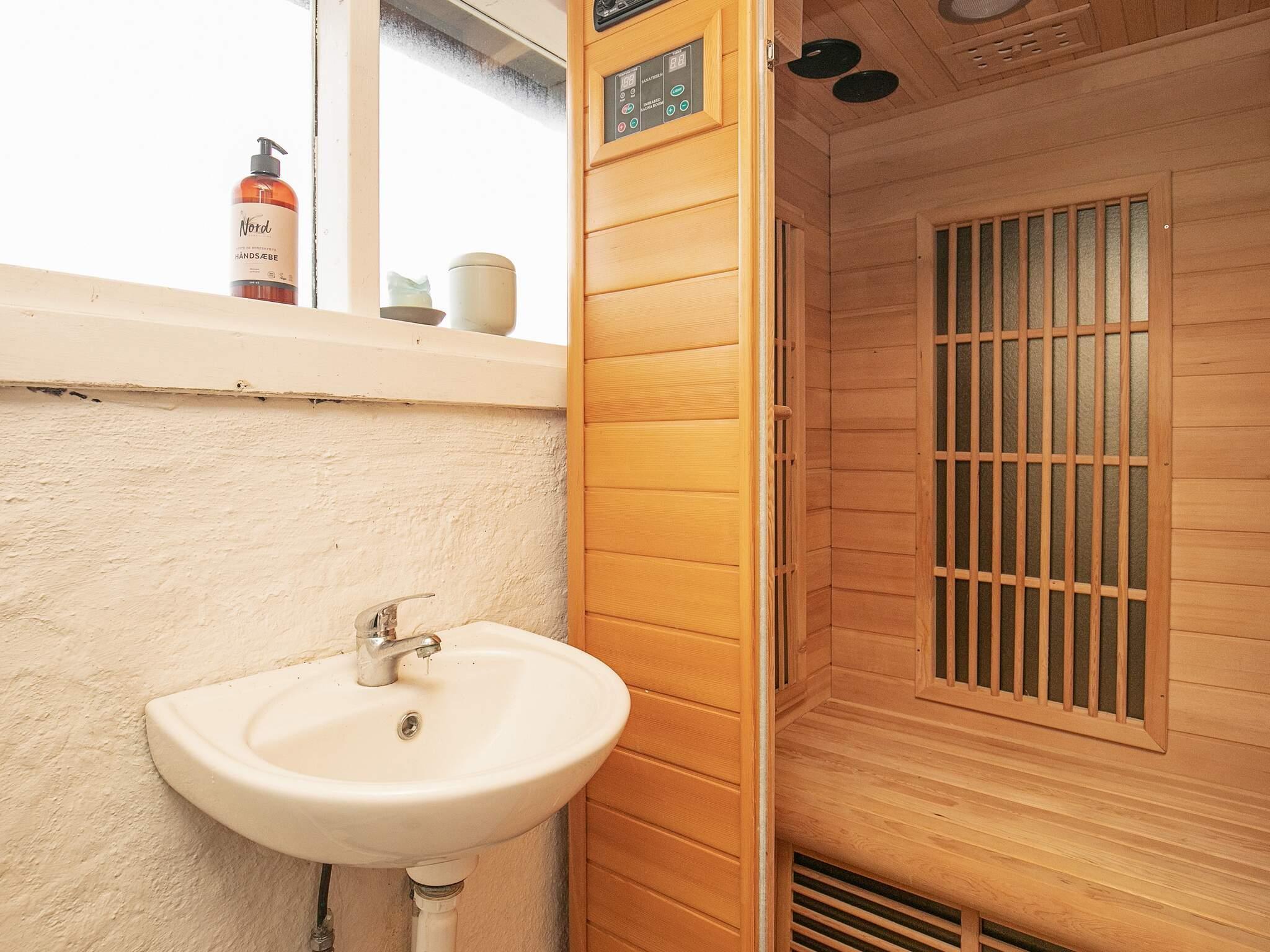 Das Ferienhaus hat zwei Schlafzimmer, Wohnzimmer und Küche mit Ceranfeld und Kühlschrank mit kleinem Gefrierschrank. Badezimmer mit kleiner Sauna. Es gibt eine energieeffiziente Wärmepumpe mit Heiz- und Kühlfunktion im Haus und zudem einen gemütlichen Holzofen. Toilette und Bad mit Sauna sind nur von außen, von der Rückseite des Hauses aus zugänglich.