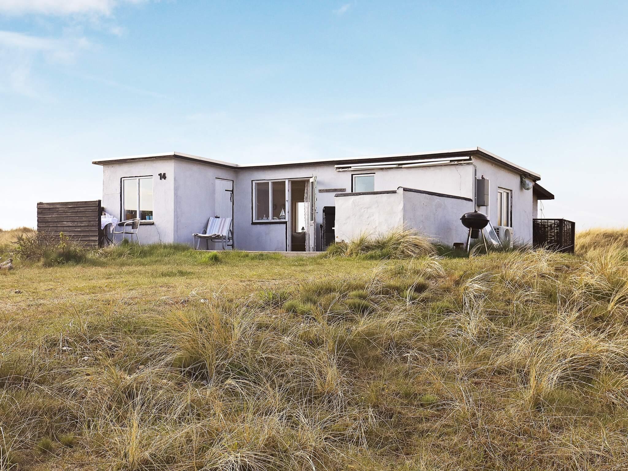 Traditionelles Ferienhaus mit Sauna im Bad und attraktiver Lage ganz vorne in der 1. Dünenreihe. Vom Dünengrundstück aus haben Sie direkten Zugang zum Strandufer bei Grønne Strand.