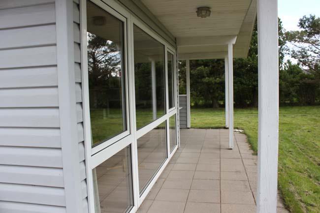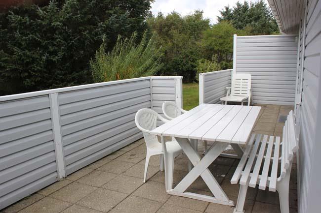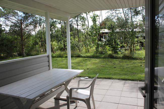 Das Haus hat zwei Terrassen, von denen die eine bei der vorderen Tür liegt und überdacht ist, und die andere, grössere sich um drei Seiten des Hauses zieht. Hier kann die Familie sich den ganzen Tag an der Sonne freuen. Ungefähr die Hälfte der Terrasse ist überdacht.