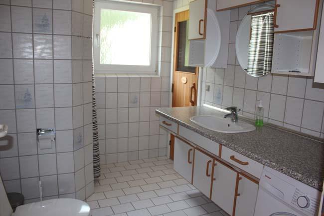 In diesem Haus befindet sich eine grosse Wohnküche, in der es reichlich Platz für die ganze Familie gibt. Sie besteht aus drei Teilen : der Küche, in der es alles gibt, was eine Küche haben sollte, dem Esstisch, der Platz für die Familie samt Gästen bietet, und zuletzt dem Wohnbereich mit bequemen Sitzmöbeln, wo sich die Familie auf dem grossen Ecksofa mit einem Kartenspiel am Sofatisch oder beim Fernsehen entspannen oder einfach das Beisammensein im Schein des Kaminofens geniessen kann. Dieser Raum hat mehrere grosse Fenster, die eine Menge Licht hereinlassen.