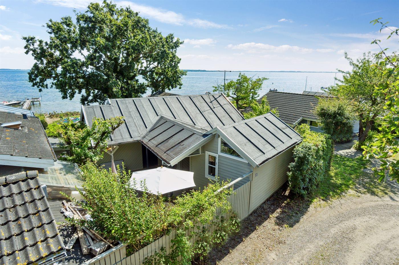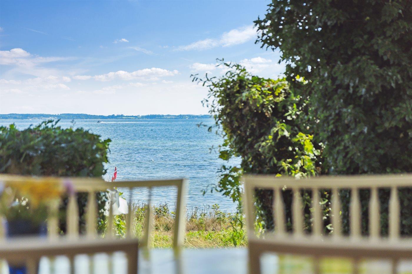 Charmantes Ferienhaus in erster Reihe am Strand von Thurø mit herrlichem Meerblick und gemütlicher Terrasse.