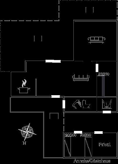 Die Ferienunterkunft liegt auf einem 363 m² großen Naturgrundstück. Die Entfernung zum Meer beträgt 10 m. Die nächste Einkaufsmöglichkeit liegt 2100 m entfernt. Es stehen ein offenes und ein geschlossenes Terrassenareal zur Verfügung. Geräteraum. Die Entfernung zu einem Spielplatz beträgt 30 m. Es steht ein Grill zur Verfügung.