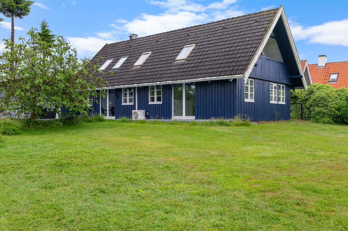 Modernes Ferienhaus auf der idyllischen Insel Thurø mit Meerblick, großem Garten und vielseitiger Ausstattung für erholsame Tage.