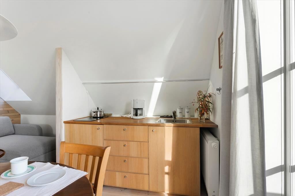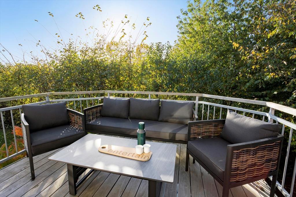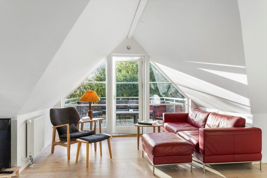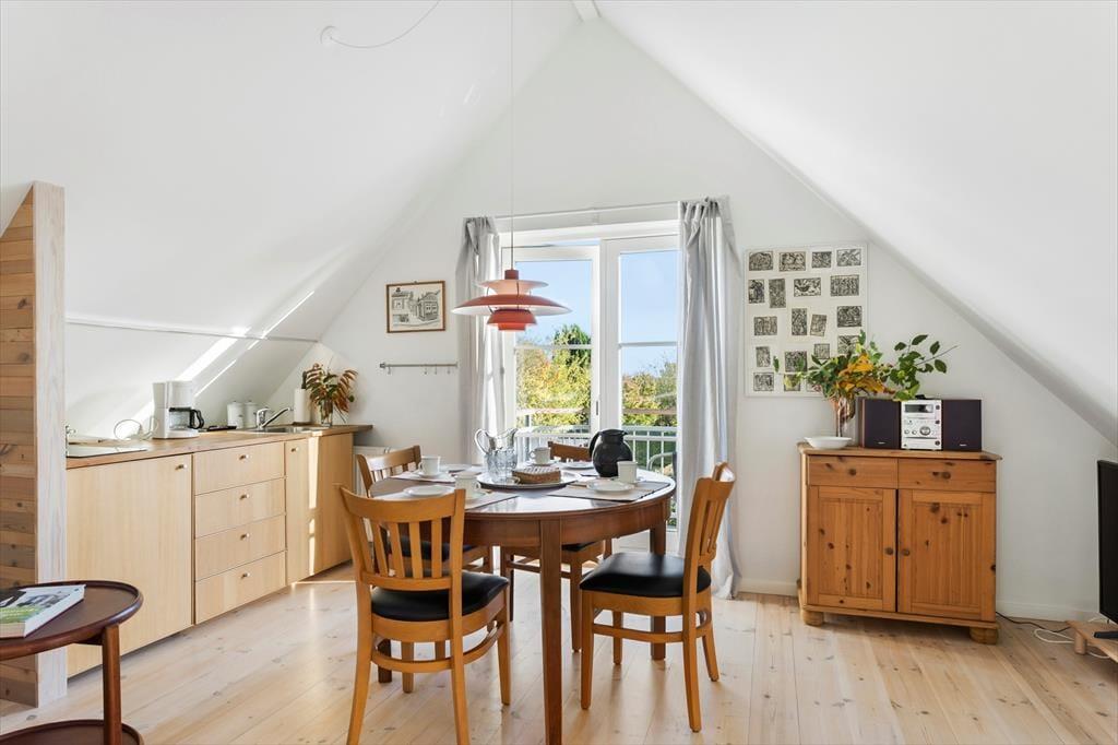 Im ersten Stock ist eine eigene Kochnische und ein Badezimmer eingerichtet, was es perfekt für zwei Familien macht, die Privatsphäre wünschen und gleichzeitig nahe beieinander sein möchten. Ein schönes Schlafzimmer sowie eine Schlafcouch sorgen dafür, dass genügend Platz für alle ist, während die drei schönen Balkone die Möglichkeit bieten, die frische Luft und die atemberaubende Aussicht auf Langeland und Tåsinge zu genießen.