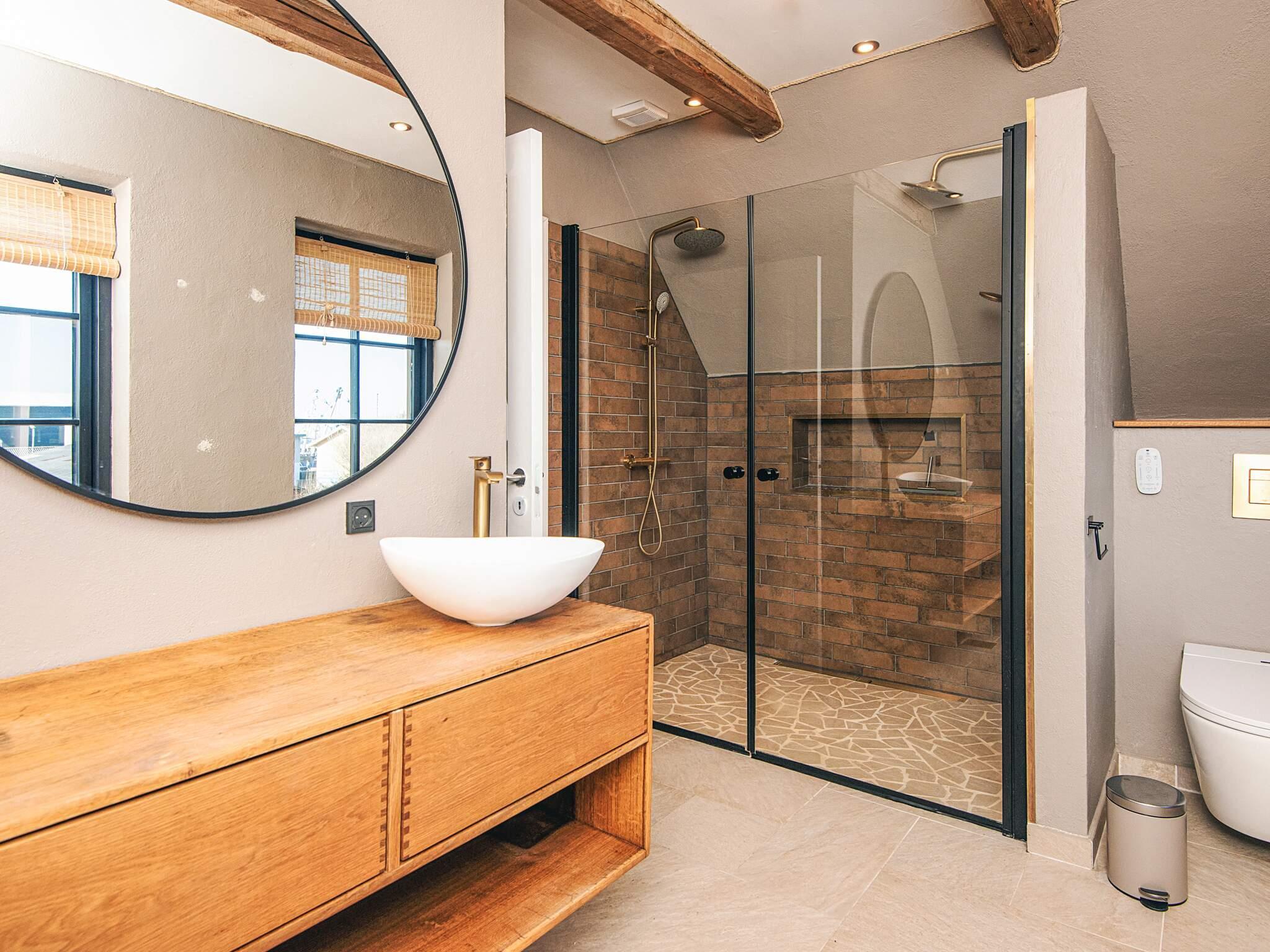 Zwei Badezimmer; eines mit Badewanne und Doppelduschkabine für zusätzlichen Luxus.
