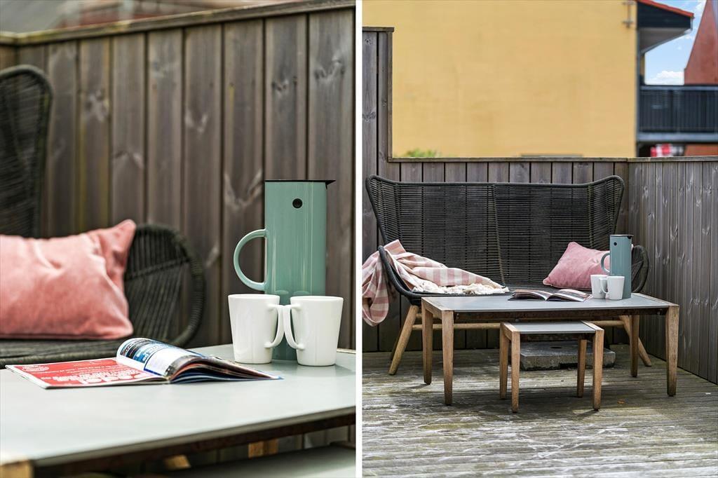 Auf der schönen Terrasse des Ferienhauses kannst du dich zurücklehnen und die frische Westküstenluft genießen, während im Hintergrund das Leben der Stadt leise summt. Hier kannst du das Meer riechen, dem Treiben am Hafen lauschen und die wärmenden Sonnenstrahlen auf der Haut spüren. Die Terrasse ist wie geschaffen für Mahlzeiten unter freiem Himmel – und an lauen Sommerabenden sorgt der Grill für gemütliche Stunden bis in die Dämmerung. Die verschiedenen Außenbereiche bieten dir sowohl Rückzugsmöglichkeiten als auch gesellige Treffpunkte – und die Kinder können ganz frei zwischen drinnen und draußen wechseln, je nachdem, worauf sie Lust haben. Obwohl das Stadtleben ganz nah ist, findest du hier einen friedlichen Rückzugsort – ideal für erholsame und gesellige Urlaubsmomente.