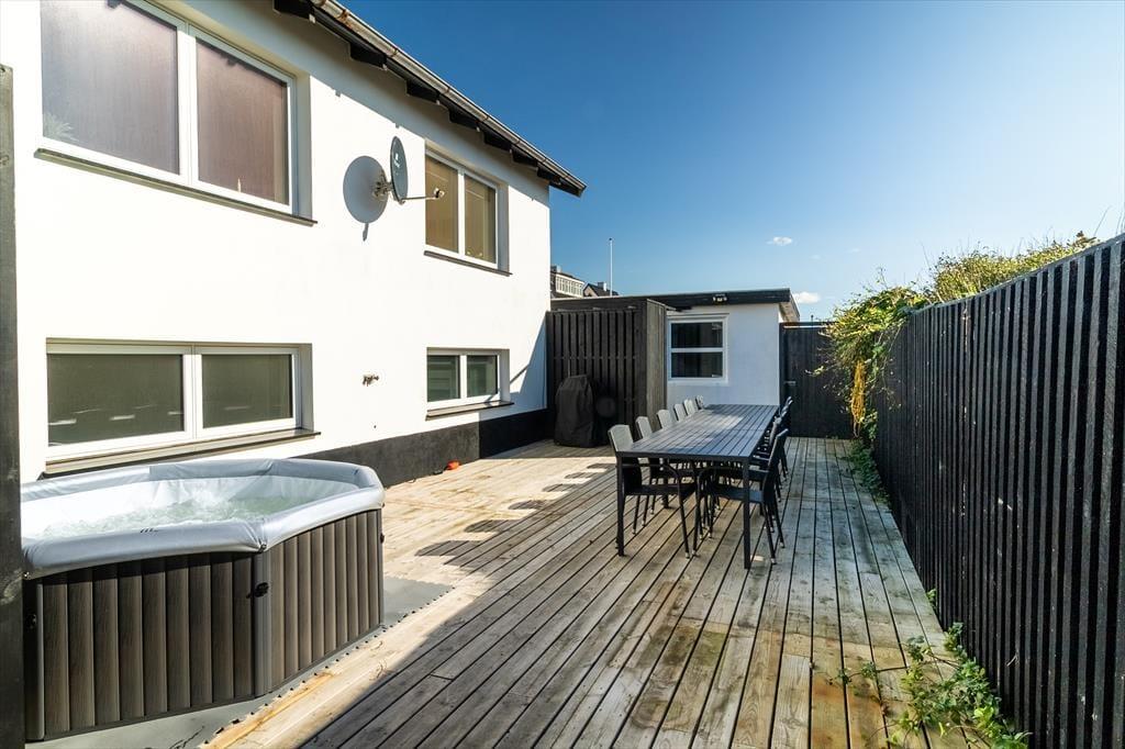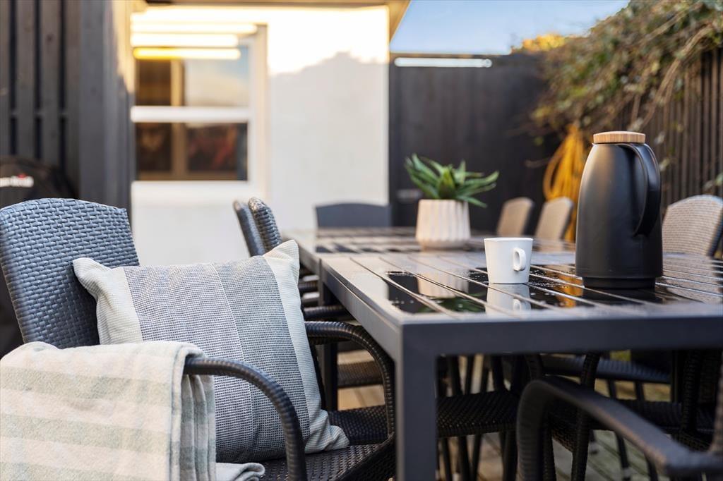 Der geschlossene Innenhof ist wie geschaffen für lange Sommertage, an denen ihr die Sonne in Ruhe und Geborgenheit hinter den schützenden Mauern des Hauses genießen könnt. Hier wartet der Outdoor-Whirlpool darauf, eurem Urlaub einen Hauch von Luxus zu verleihen – sowohl an warmen Sommertagen als auch an kühlen Abenden, wenn es ein besonderes Erlebnis ist, im warmen Wasser unter dem Sternenhimmel zu sitzen. Die abgeschlossene Terrasse sorgt zudem dafür, dass Kinder und Hunde sicher draußen spielen können, während die Erwachsenen es sich in den Gartenmöbeln bequem machen. Die Atmosphäre lädt dazu ein, den Grill anzuwerfen und die Mahlzeiten unter freiem Himmel zu genießen. Und wenn die Sonne untergeht, könnt ihr euch in den Wintergarten zurückziehen und die Gemütlichkeit in den warmen Räumen fortsetzen.