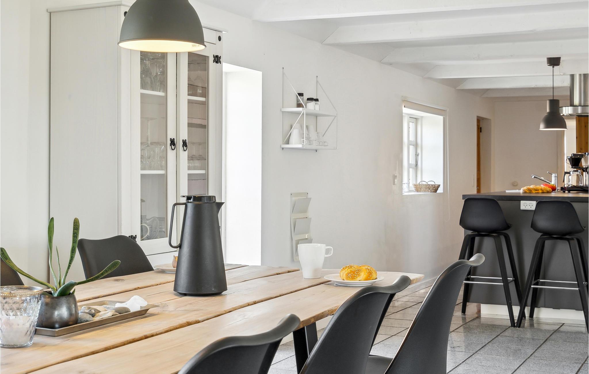 Entfliehen Sie dem Alltag und erholen Sie sich in diesem geräumigen Ferienhaus, es ist genau der richtige Ort für eine erholsame Auszeit mit der Familie. Die hellen Räume laden mit Ihrer wohnlich-modernen Einrichtung zum Entspannen ein. Das Wohnzimmer wird schnell zum Zentrum der gemeinsamen Aktivitäten, genießen Sie die gemeinsame Zeit und freuen Sie sich auf gemütliche Abende auf dem großzügigen Sofa beim leisen Prasseln der Flammen im Kaminofen.
