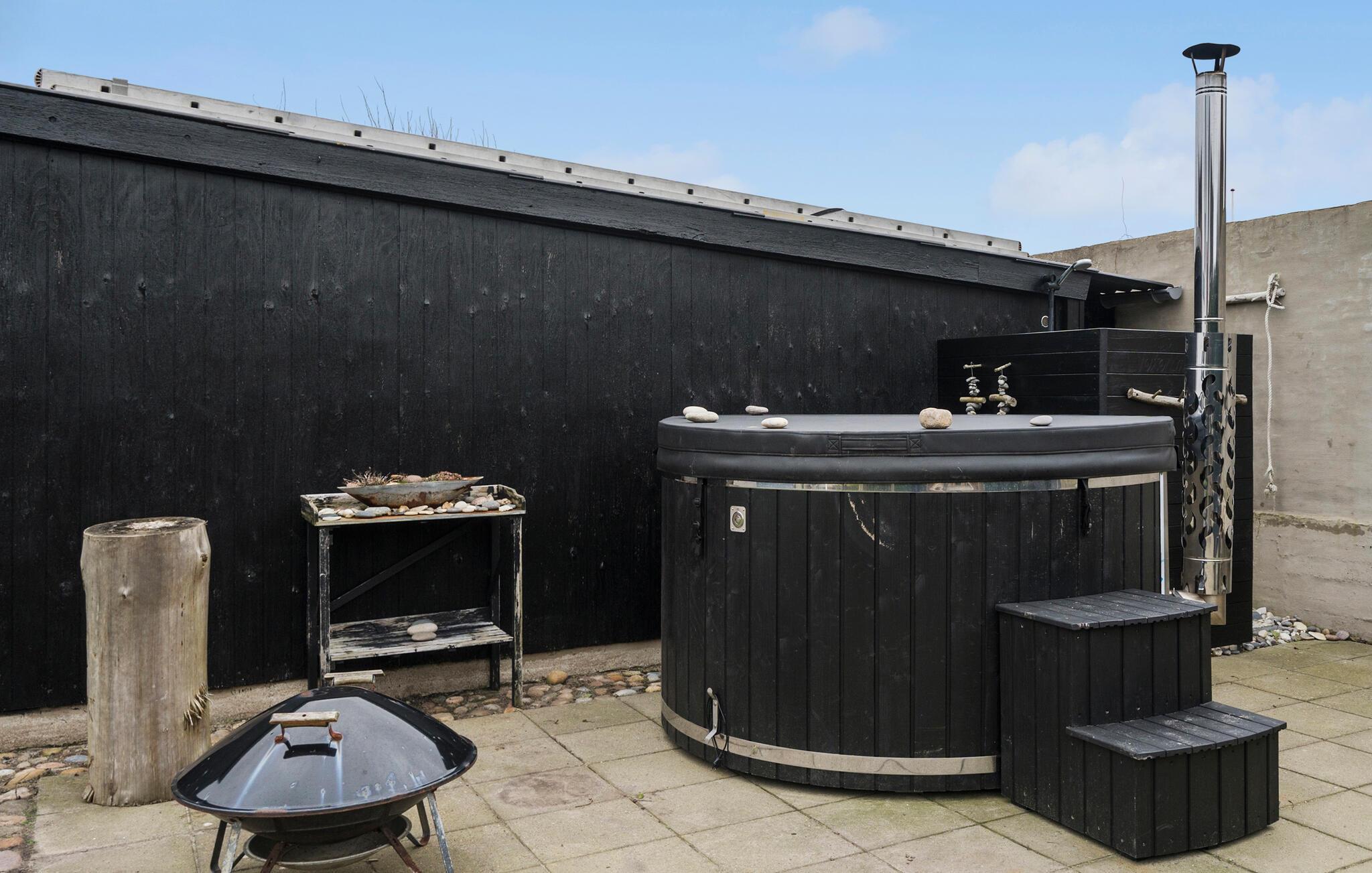 Draußen erwartet Sie ein schöner Garten mit verschiedenen Sitzbereichen, die zu gemütlichen Grillabenden oder entspannten Stunden in der Sonne einladen. Eine große Terrasse mit Loungemöbeln und ein gepflegter Rasenbereich bieten ausreichend Platz für Erholung und Aktivitäten. Nach einem Strandtag oder einem warmen Bad im Finnischen Holzbad sorgt die stilvolle Außendusche für eine erfrischende Abkühlung.