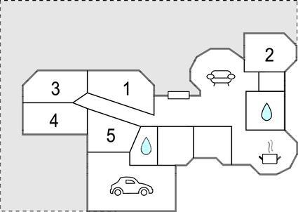 Badezimmer (nr. 1) - WC. Warmes und kaltes Wasser. Dusche