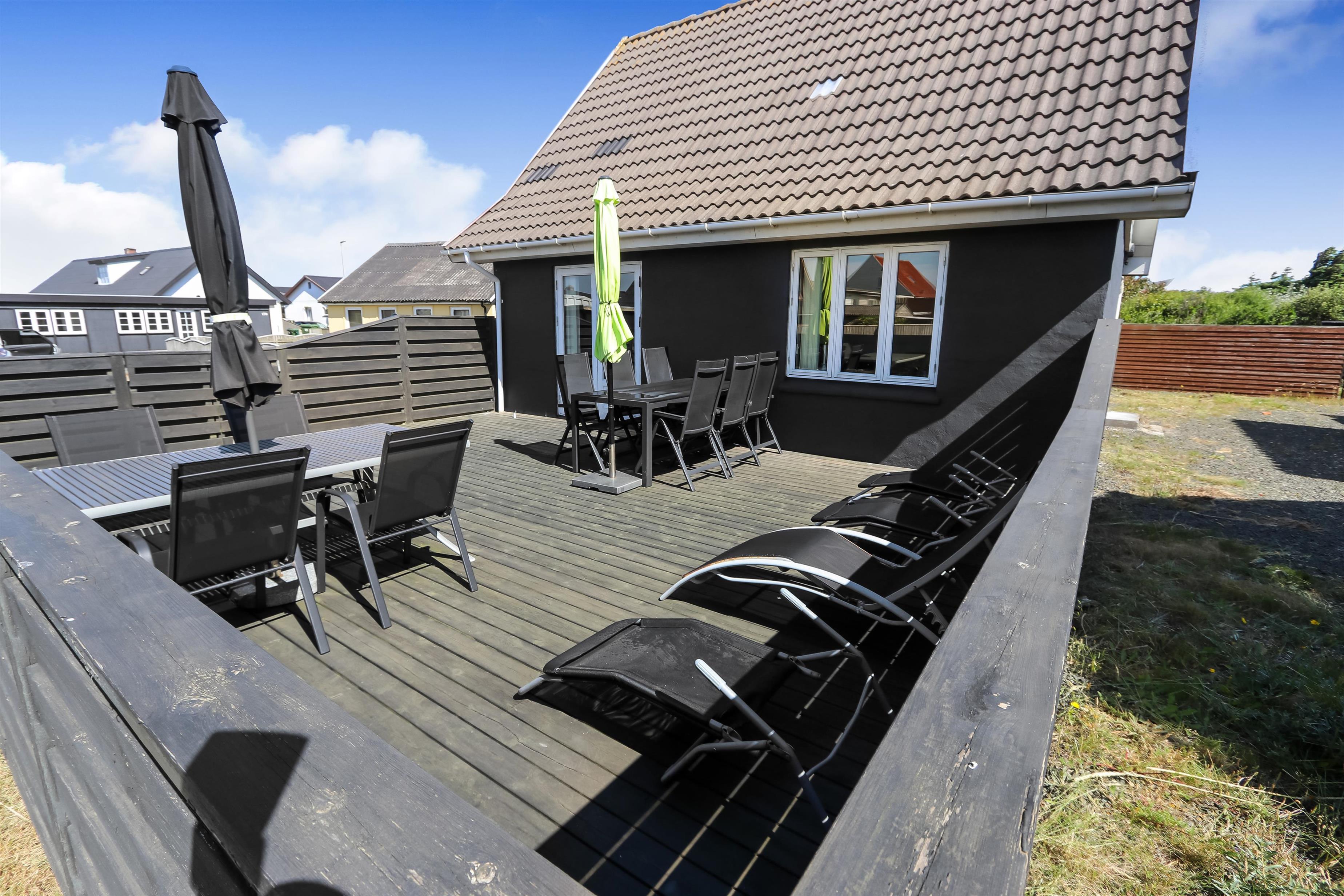 Vom Wohnraum gibt es einen Zugang zu der eingezäunten Terrasse mit Windschutz. Es gibt auch ein Garage beim Haus und am Garage gibt es eine überdachte Terrasse. Für die Terrasse gibt es 3 Sonnenliegen, Grill und Gartenmöbel, damit man sich es gemütlich machen kann. Nicht weit weg vom Haus gibt es mehrere Einkaufsmöglichkeiten in Thyborøn. Sie können am Hafen spazieren gehen oder einen der kinderfreundlichsten Strände der Nordsees geniessen, der an der Nordseite der Öffnung zum Limfjord, fast 2000 Meter vom Haus entfernt liegt. Es gibt jedoch eine noch kürzere Entfernung zur wilden Nordsee. Gehen Sie direkt nach Westen, dann sind Sie schnell am Strand. Hier ist es allerdings nicht besonders kinderfreundlich, aber man kann problemlos baden, Sandburgen bauen oder einen Drachen fliegen lassen. Wenn Sie wandern möchten, befindet sich das geschütze Vogelschutzgebiet nur 100 m südlich des Hauses. Hier können Sie beispielsweise über die Tange bis nach Harboøre wandern. Wir empfehlen Ihnen auch viele der Sehenswürdigkeiten der Stadt zu besuchen, wie z B. das Schneckenhaus, das Seekriegsmuseum, das Jütland Aquarium und das Küstenzentrum. Beenden Sie die Aktivitäten mit frischem Fisch am Hafen.
