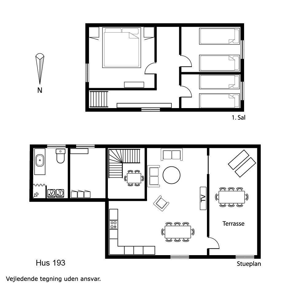 Das Haus ist 2-stöckig, hell und modern. Der Wohnraum und die Küche sind im selben Raum und hier gibt es Holzböden. Die Küche hat einen Herd mit Cerankochfeld, Abzugshaube und Kühl-/Gefrierschrank. Der Wohnraum bietet Holzofen für Holzpellets (Pellets können Sie bei XL Baumarkt kaufen) Esstisch, Sofagruppe und Fernseher mit dänischen Programmen. Ausserdem gibt es einen DVD-Player. Es gibt 3 Schlafräume im Haus, die alle im 1. Stock liegen. 1DB + 1DB + 1DB. Für die kleinsten Gäste gibt es ein Kinderbett und ein Kinderstuhl im Haus. Das Badezimmer ist im Parterre und mit Fussbodenheizung, Toilette, Waschbecken und Dusche. Ausserdem gibt es Waschmaschine und Trockner im Badezimmer, wenn Sie also waschen müssen, ist dies einfach und unkompliziert. Im Treppenaufgang gibt es einen kleinen Aufenthaltsraum mit Kinderstühlen und Tisch in Kindergrösse. Hier können sich die Kleinen amüsieren. Es gibt auch ein Transistorradio.