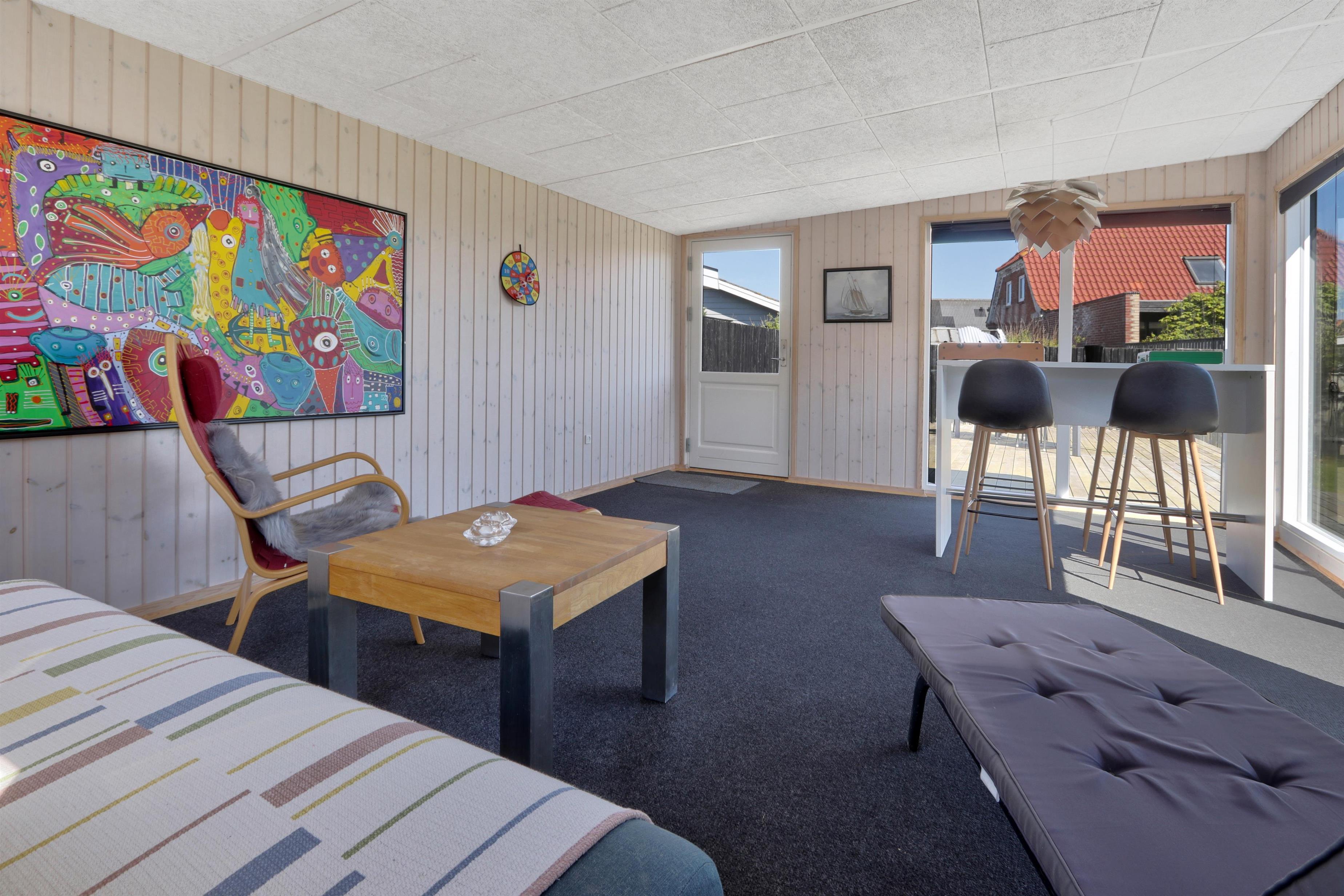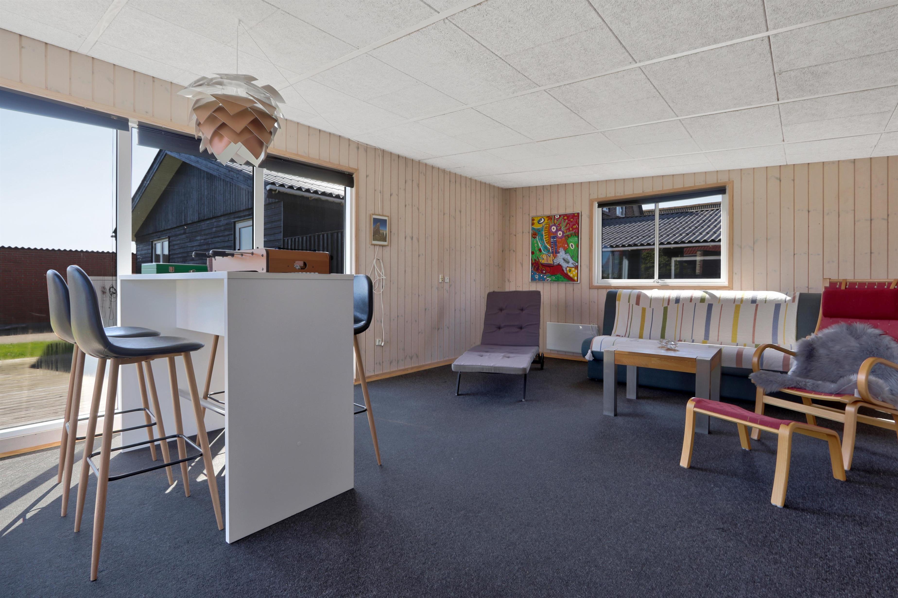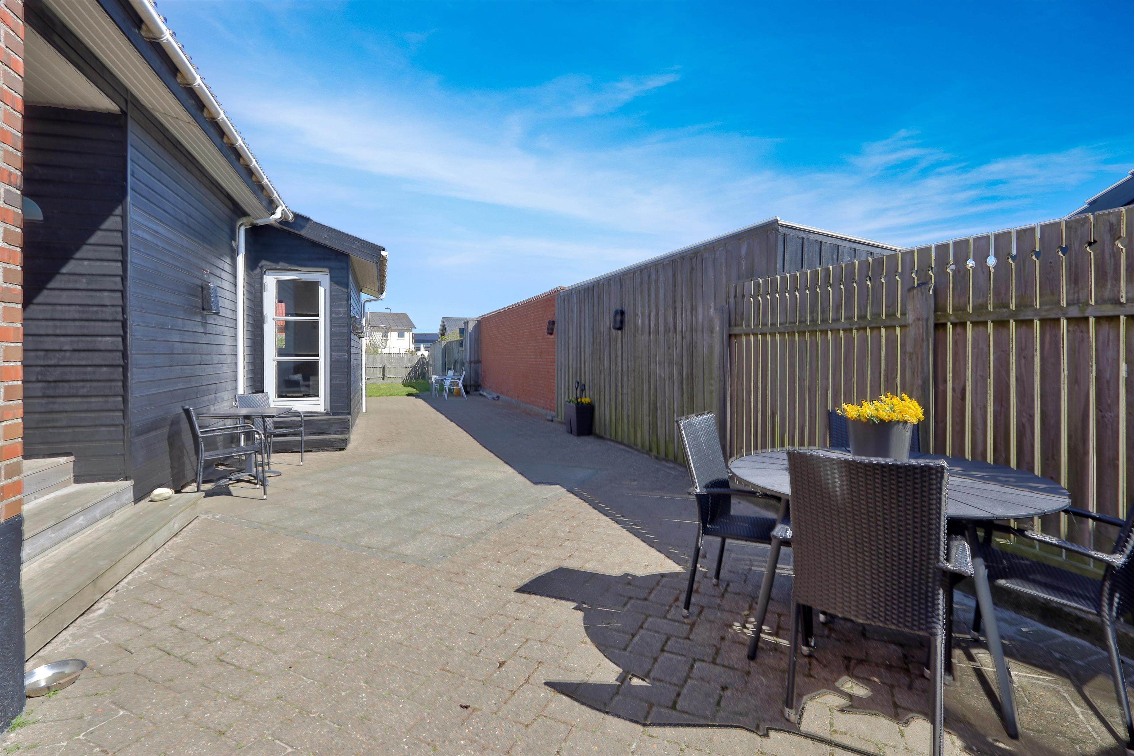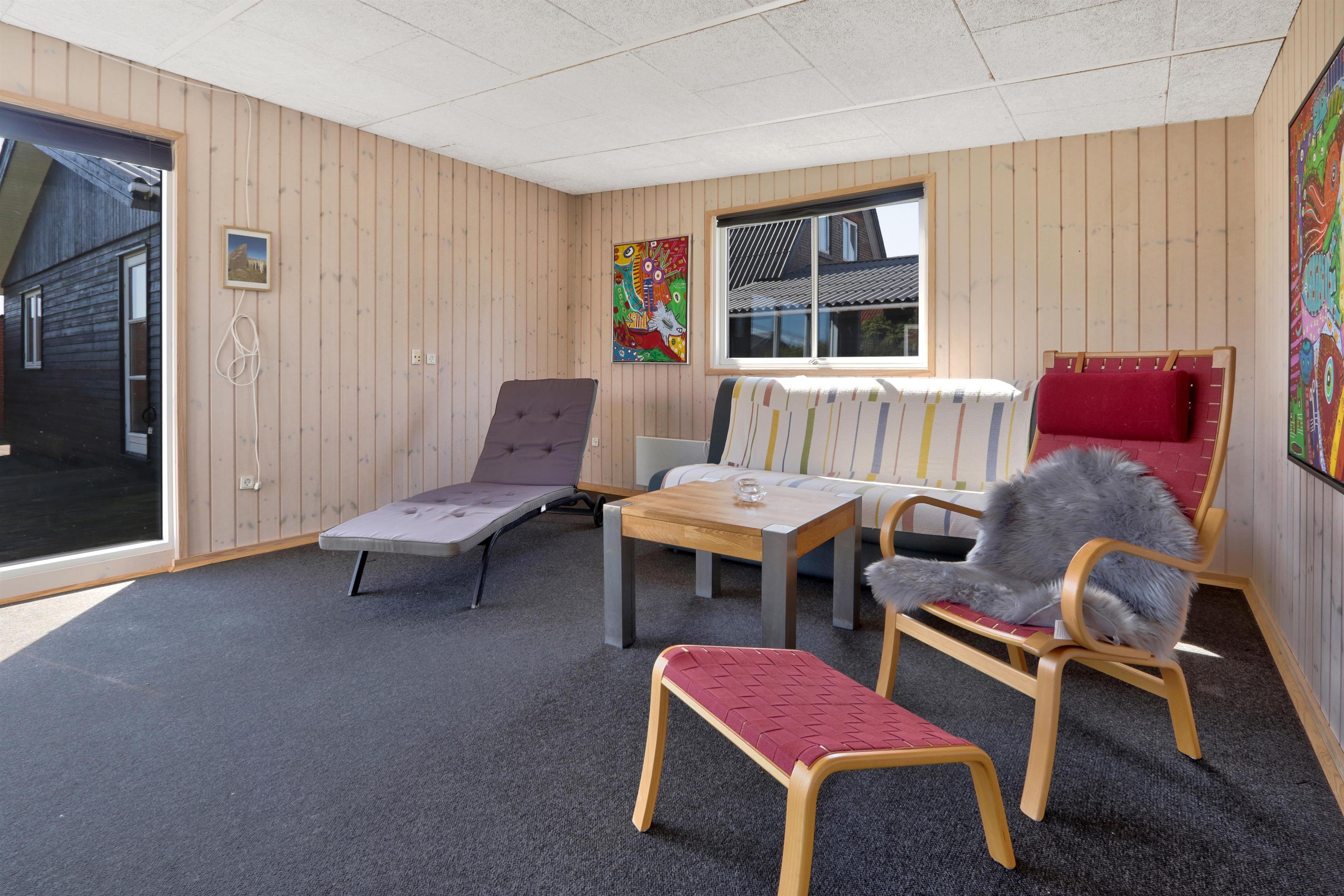 Draußen erwartet Sie ein eingezäunter, privater Garten mit 757 m² Fläche, ideal für Spiel, Entspannung oder Mahlzeiten im Freien. Der helle Wintergarten verlängert die Outdoor-Saison und ermöglicht es Ihnen, den Garten auch bei Wind oder an kühleren Tagen zu genießen. Gartenmöbel und ein Grill stehen selbstverständlich zur Verfügung. Freier Zutritt zur Værket in Thyborøn.