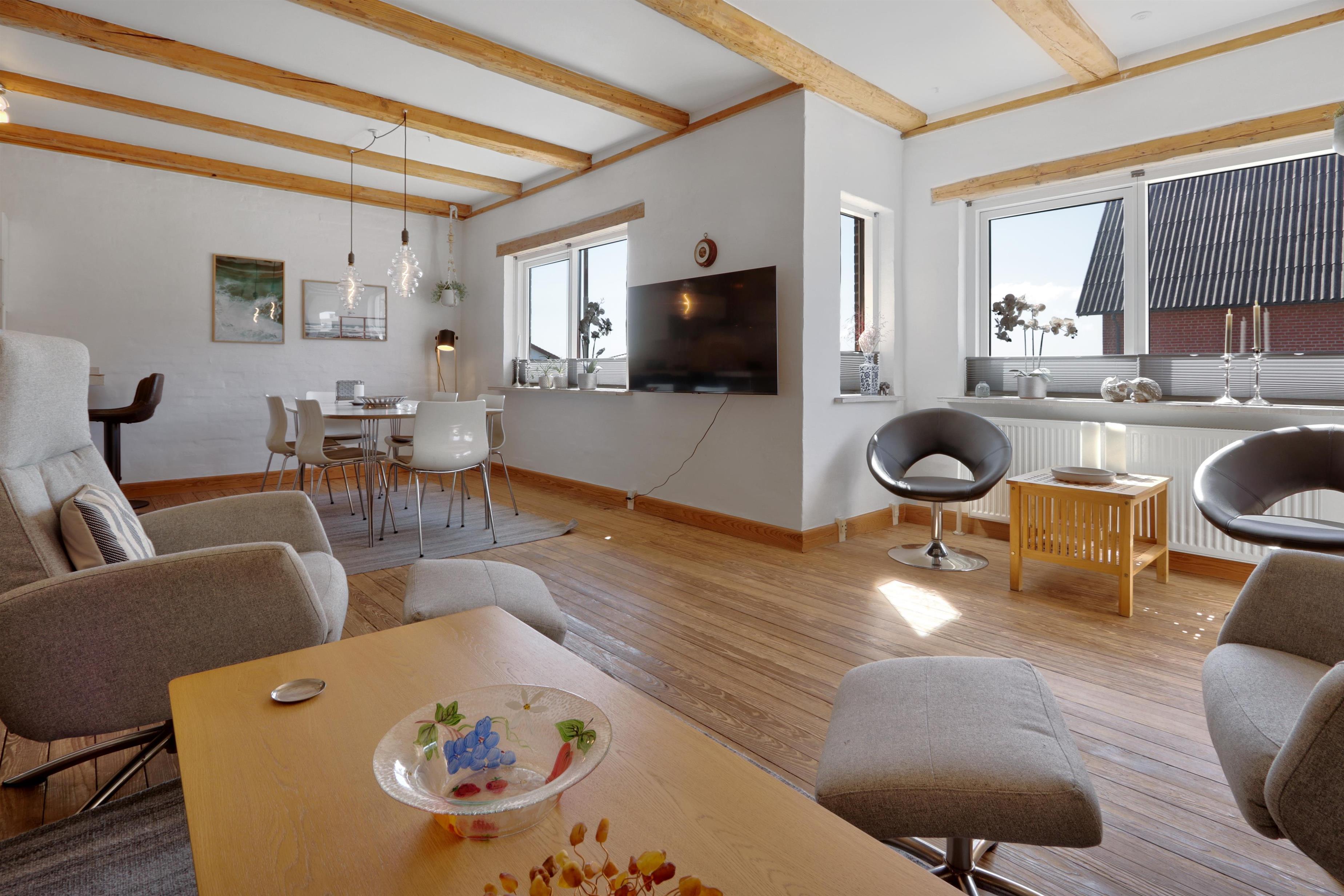 Willkommen in diesem einladenden und großzügigen Stadthaus auf zwei Etagen, zentral gelegen im malerischen Fischerdorf Thyborøn – umgeben von Meer, Dünen und spannenden Erlebnissen für die ganze Familie.