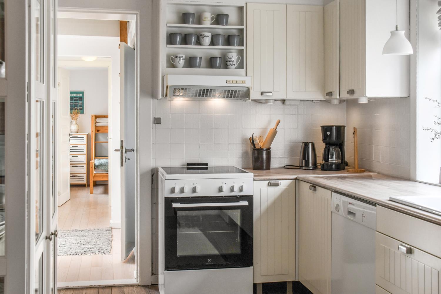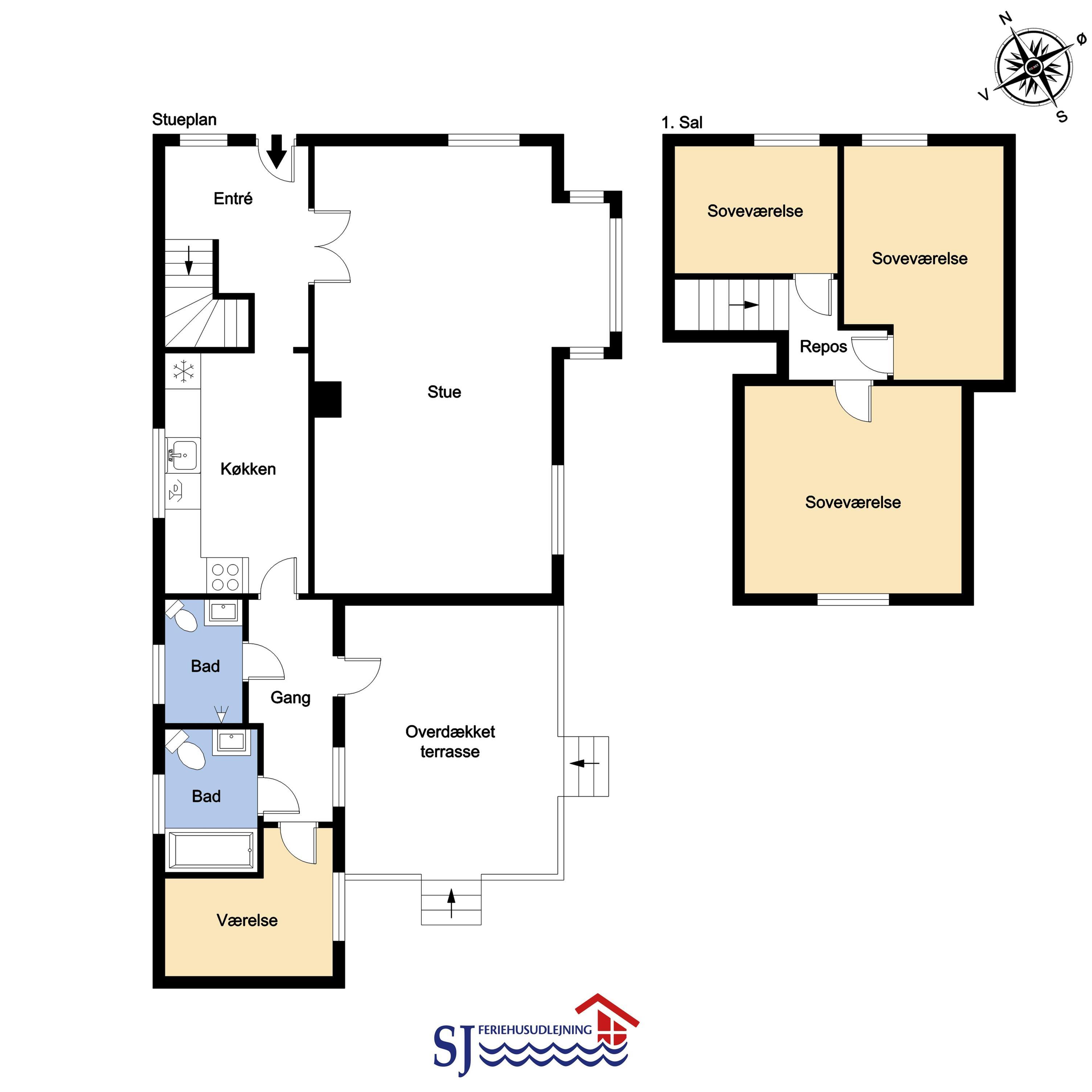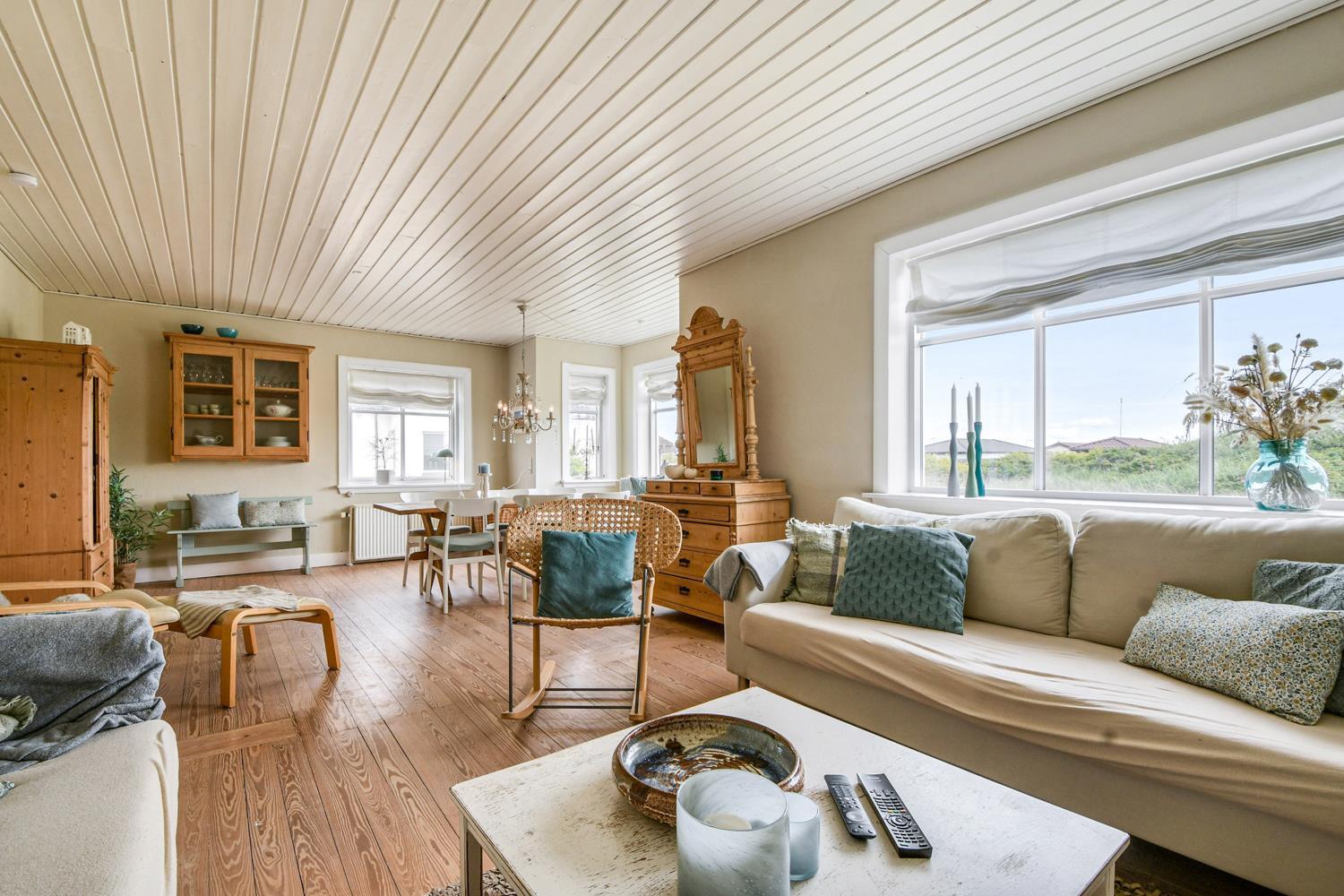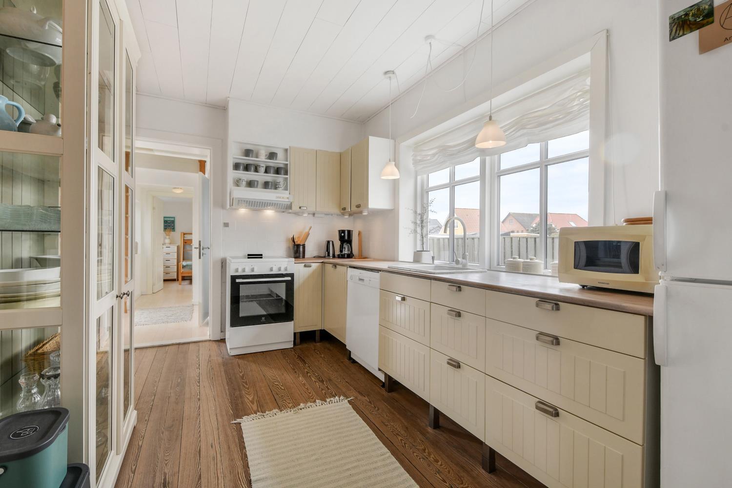 Dieses 162 m² grosse Haus wurde 2013 renoviert. 4 Schlafräume: 1DB + 1DB + 1DB + 1E die über beide Etagen verteilt sind. In Flur mit Platz zum Ablegen und Aufhängen von Garderobe und die Treppe, die zum 1. Stock führt, heisst Sie wilkommen. Neuere Küche mit Geschirrspüler, Herd mit Ceranfeldkochplatten, Kühlschrank mit Gefrierfach. Der Wohnraum ist gemütlich eingerichtet mit Sitzecke, TV mit dänischen und deutschen Programmen, Apple-TV, DVD-Spieler, Radio und CD-Spieler und Esstisch. Kleines neu renoviertes Badezimmer mit Toilette, Waschbecken, Dusche und Badewanne. Extra Badezimmer mit Toilette, Mini-Waschmaschine und Dusche. Beide Badezimmer sind mit Fliesenboden mit Fussbodenheizung. Die 2 Schlafräume mit DB Betten sind im 1. Stock. Schöne rustikale Holzböden im ganzen Haus. Nichtraucher-Haus. 1 Haustier ist erlaubt.