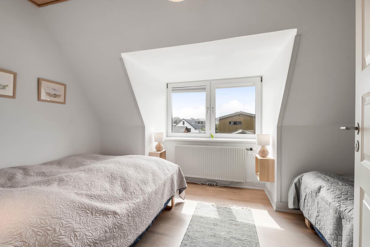 122 qm großes ganzjähriges Haus mit Fernheizung, freiem WLAN und 65 m2 grosse Kelder. Ein funktioneller Flur heißt Sie willkommen und führt Sie auf die verschiedenen Ebenen im Haus. Im Erdgeschoss liegt die Küche und der Wohnraum. Die Küche ist mit Herd mit Ceranfeld-Kochplatten, Abzugshaube, Ofen, Kühlschrank, Mikrowelle und Geschirrspüler ausgestattet. Der Wohnraum ist mit Ledermöbeln, Smart-TV, Streaming, deutschen, schwedischen und norwegischen Programmen und einem Ausgang zu einer schönen Terrasse mit Gartenmöbeln, 2 Sonnenliegen und Grill. Die Terrasse und ein kleiner Garten mit Pavillon liegt Richtung Ost/Süd im Windschutz vom Westwind. Die Treppe zum 1. Stock führt zu dem geräumigen Badezimmer mit Dusche, Toilette und Waschbecken und 2 großen Schlafräumen: 1DB und 1 3/4B +1B. Die Treppe geht weiter zum 2. Stock und führt Sie zu einem kombinierten Wohnraum mit Biokamin und Schlafraum (1DB), von wo Sie einen schönen Blick über die Nordsee und die Dünen haben. Vom Flur führt auch eine Treppe zum Keller mit Triefkühltruhe, Waschmaschine und Trockner und der Möglichkeit zur Aufbewahrung von Angeln oder Surfausrüstung. Nichtraucher-Haus. Haustiere sind nicht erlaubt.