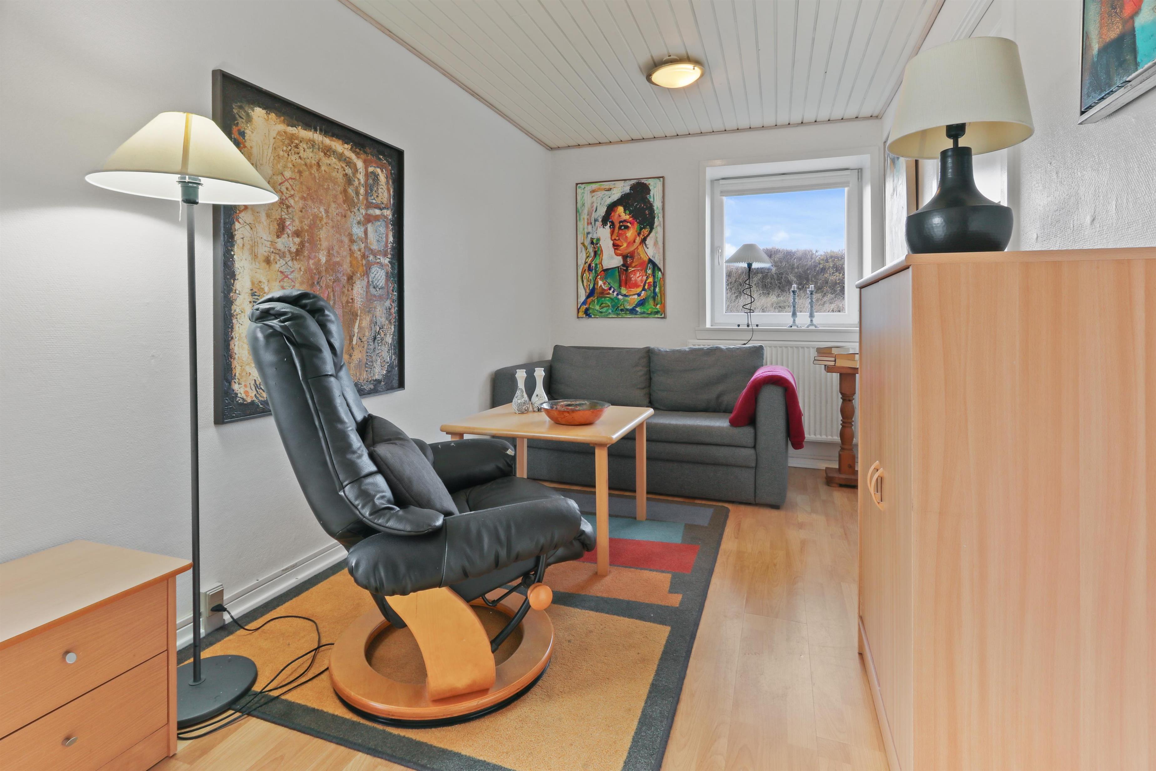 Vom Wohnraum haben Sie einen Ausgang zu einer schönen Terrasse, die zum Nachbarn abgeschirmt ist, und von hier haben Sie einen schönen Blick zu den hohen Dünen in Thyborøn. Gartentisch, Gartenstühle und natürlich auch ein Grill sind vorhanden. Von der Wohnung aus können alle Sehenswürdigkeiten von Thyborøn zu Fuß erreicht werden. Spazieren Sie im Hafen und genießen Sie dort das Leben , besuchen Sie die Fischauktion in der Saison, oder probieren Sie einen der kinderfreundlichsten Strände der Nordsee, die nur 1500 Meter vom Haus entfernt ist und in den Limfjord übergeht. Der Strand direkt vor dem Haus eignet sich eher zum Angeln, Schnorcheln und Tauchen sowie zum Drachenfliegen oder zum Sammeln von Bernstein. Hier können Sie auch stundenlang Bunker studieren und sogar in viele hineingehen - denken Sie dabei an die Taschenlampe. Wenn Sie vom Haus aus weniger als 1 Kilometer in Richtung Süden laufen, gelangen Sie zu einem großen Vogelschutzgebiet, in dem Sie zu jeder Jahreszeit in aller Ruhe die Natur betrachten können. Obligatorische Endreinigung