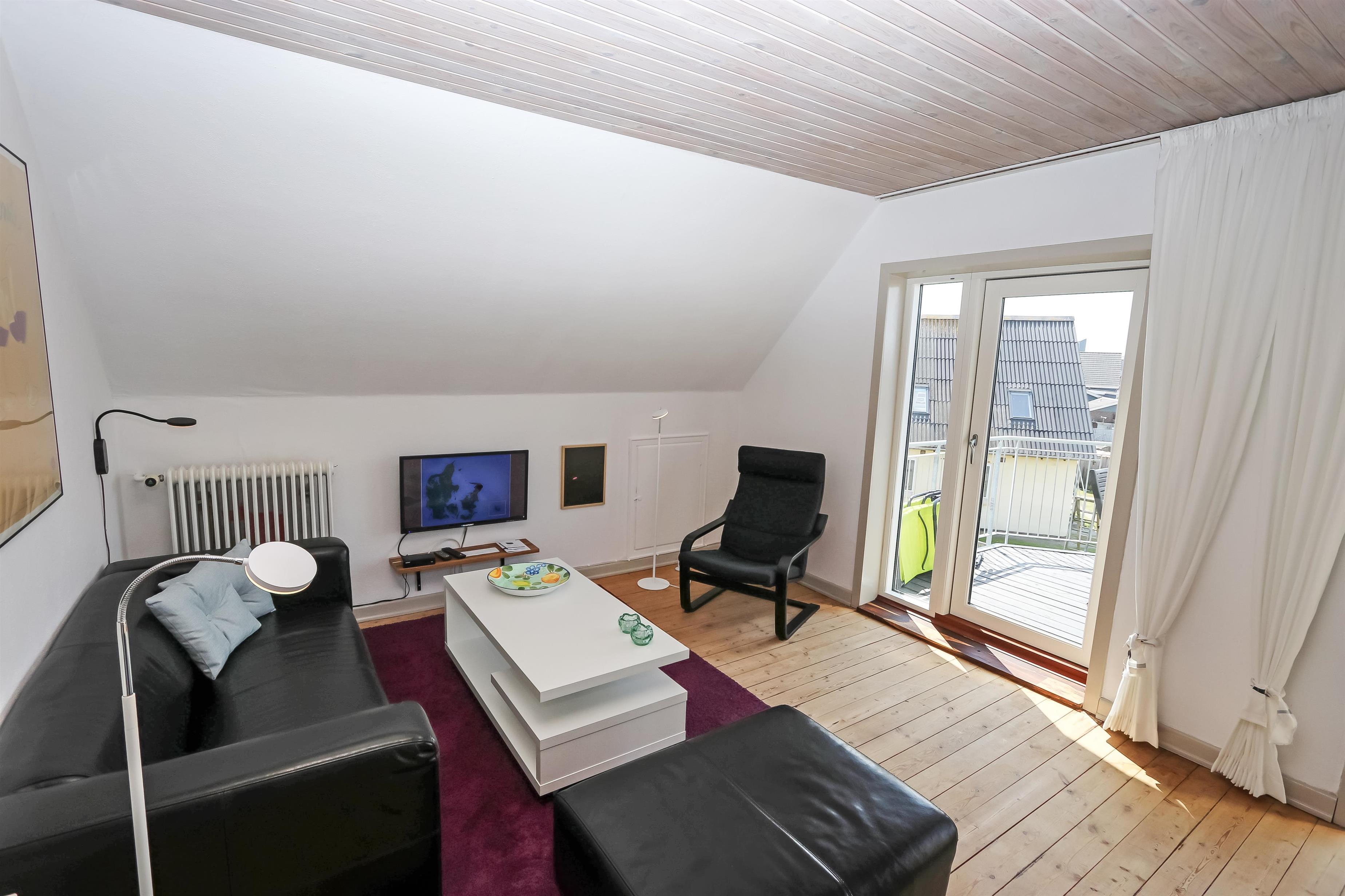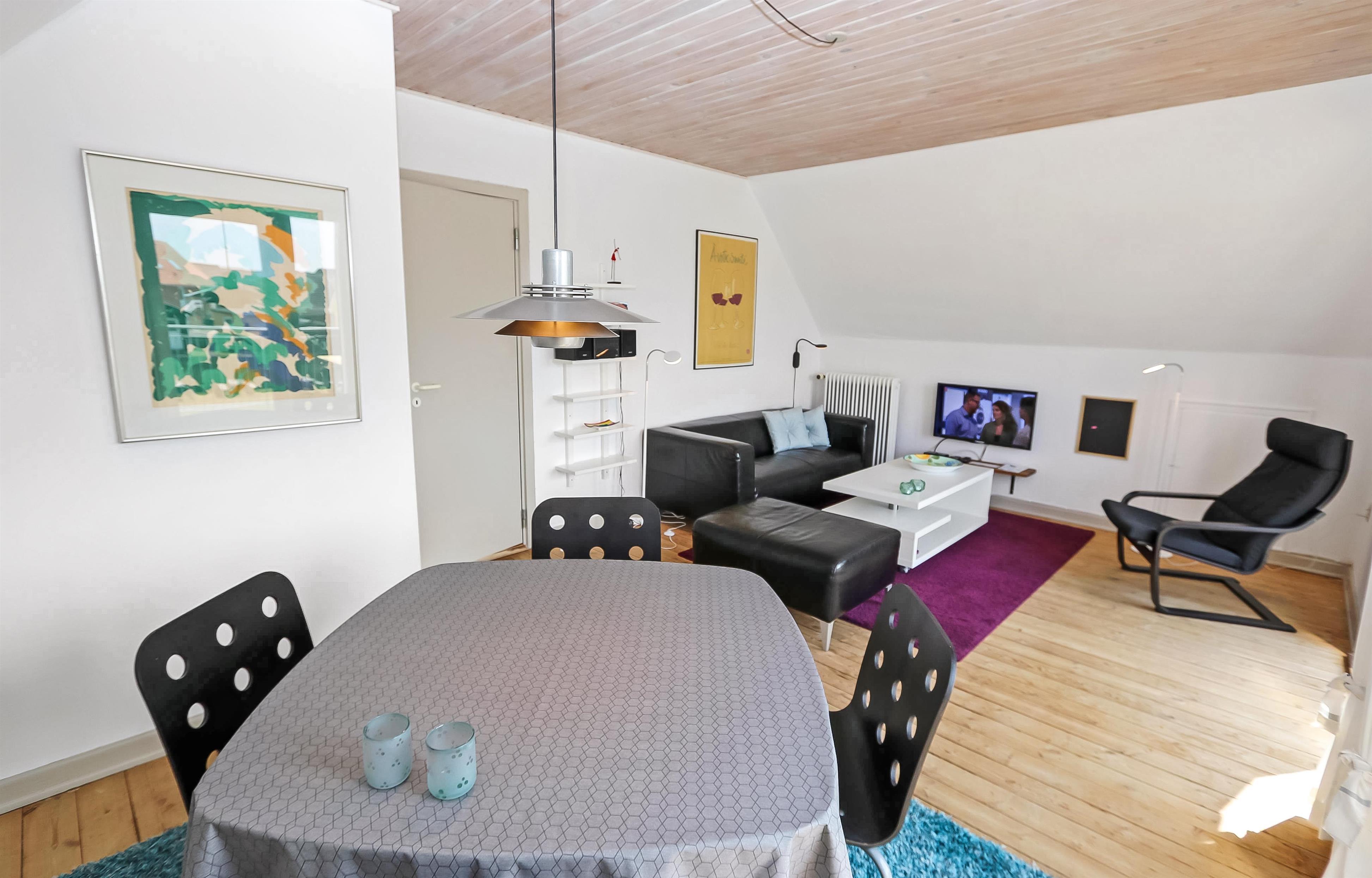 60 m² große Wohnung im 1. Stock, die zusammen mit dem Rest des Hauses 2020 renoviert wurde. Vom Wohnzimmer und von der Terrasse / dem Balkon hat man einen herrlichen Blick auf die Dünen. Eingang über die gemeinsame Treppe. Wohnzimmer mit Ledermöbeln, Fernseher mit deutschen und dänischen Kanälen, Radio und Esstisch. Küche mit Herd mit Cerankochfeld, Abzugshaube, Geschirrspüler und Kühlschrank mit Gefrierfach. 2 Schlafzimmer: (1DB + 1 Doppelschlafcouch). Kleineres Badezimmer mit Fliesenboden, Toilette, Waschbecken und Dusche. Es gibt praktische Hartböden in der gesamten Wohnung. Nichtraucherwohnung. Haustiere sind nicht erlaubt. Nebenkosten pro Woche 1.5.-31.10. EUR 56 und vom 1.11.-30.4. 84 EUR pro Woche Haben Sie ein Elektro- oder Hybrid-Auto, gibt es aussen beim Haus einen Stromanschluß (400V + 230V), den Sie mit separater Abrechnung nutzen können. Kontaktieren Sie bitte SJ Feriehusudlejning, bevor Sie den Anschluß nutzen.