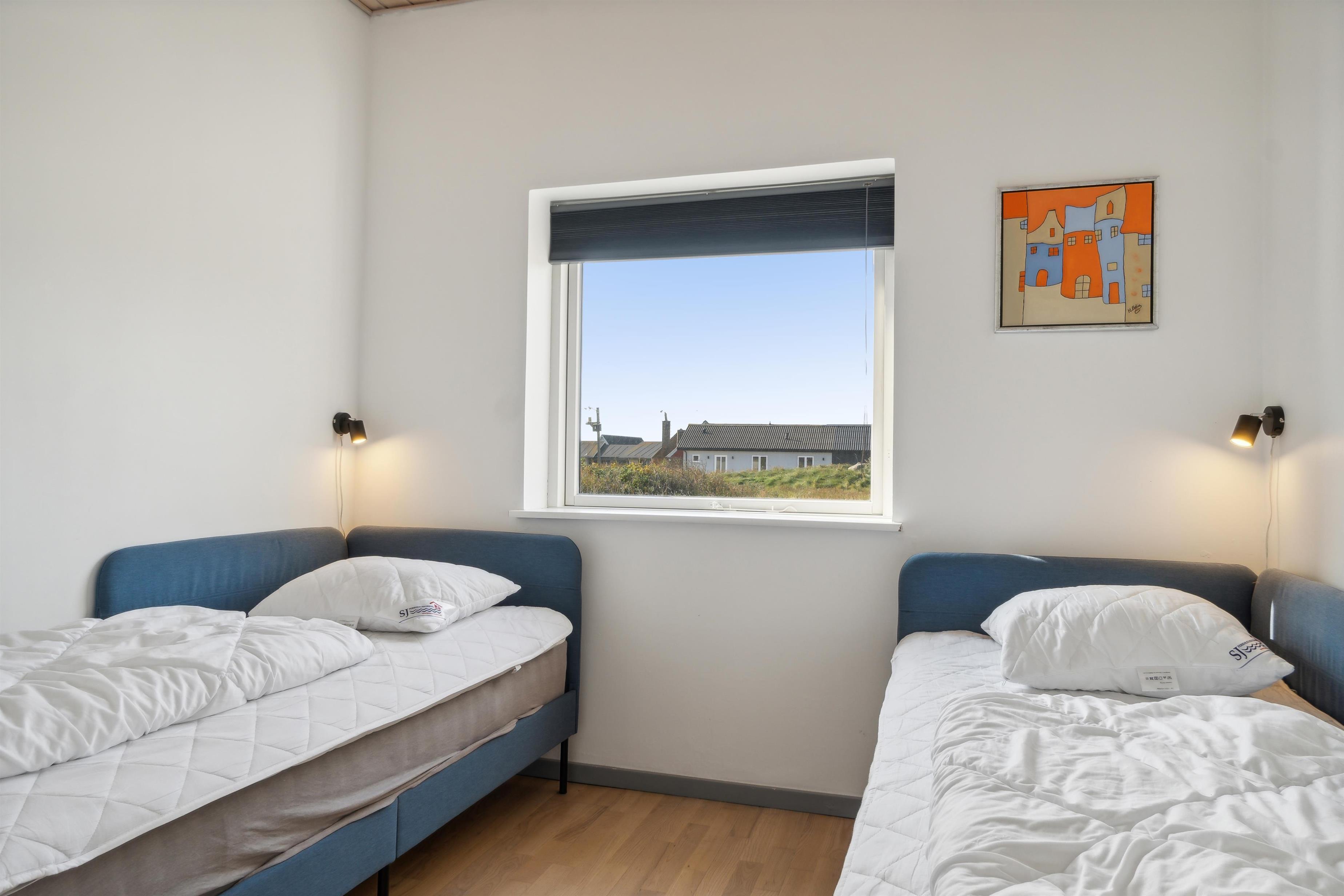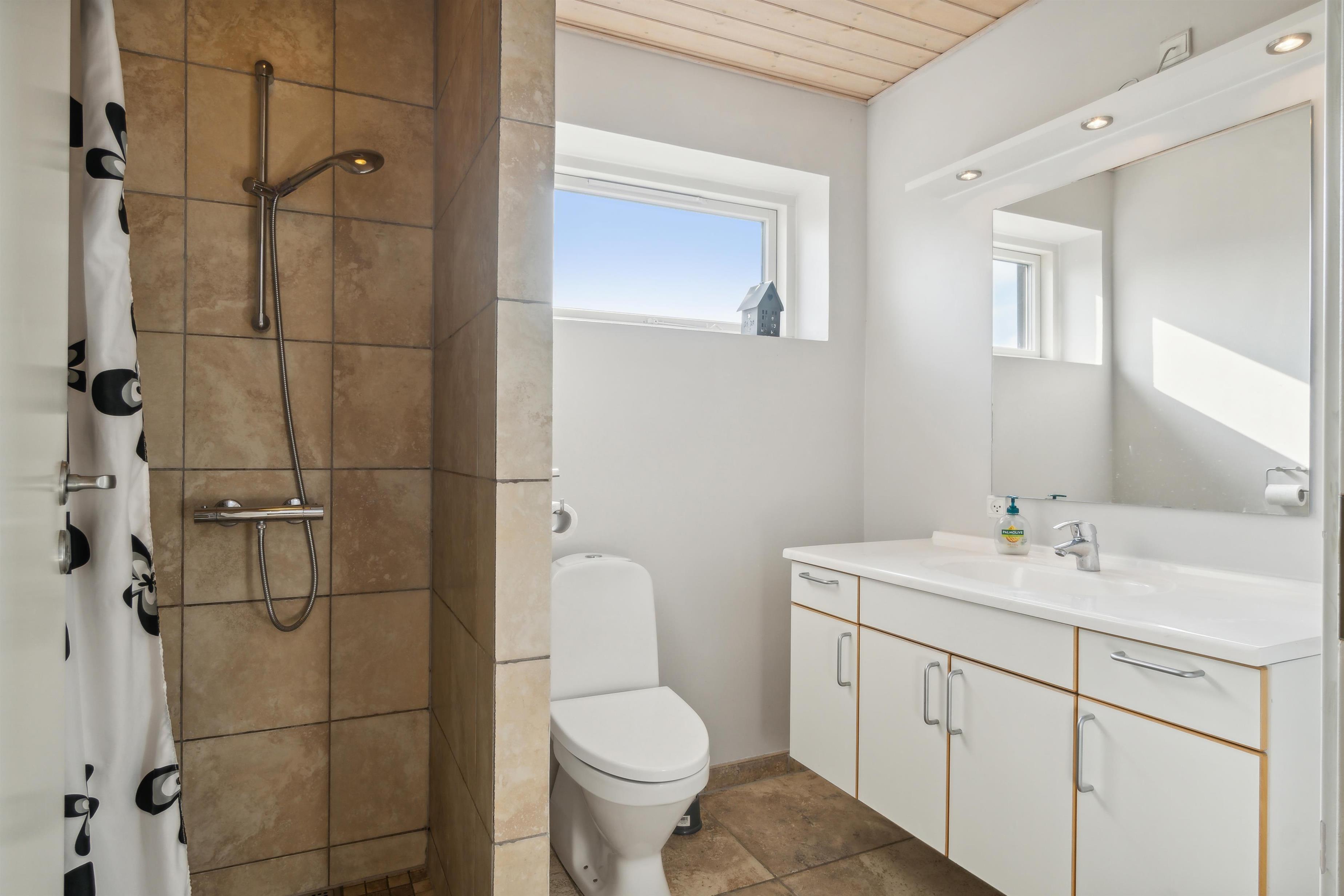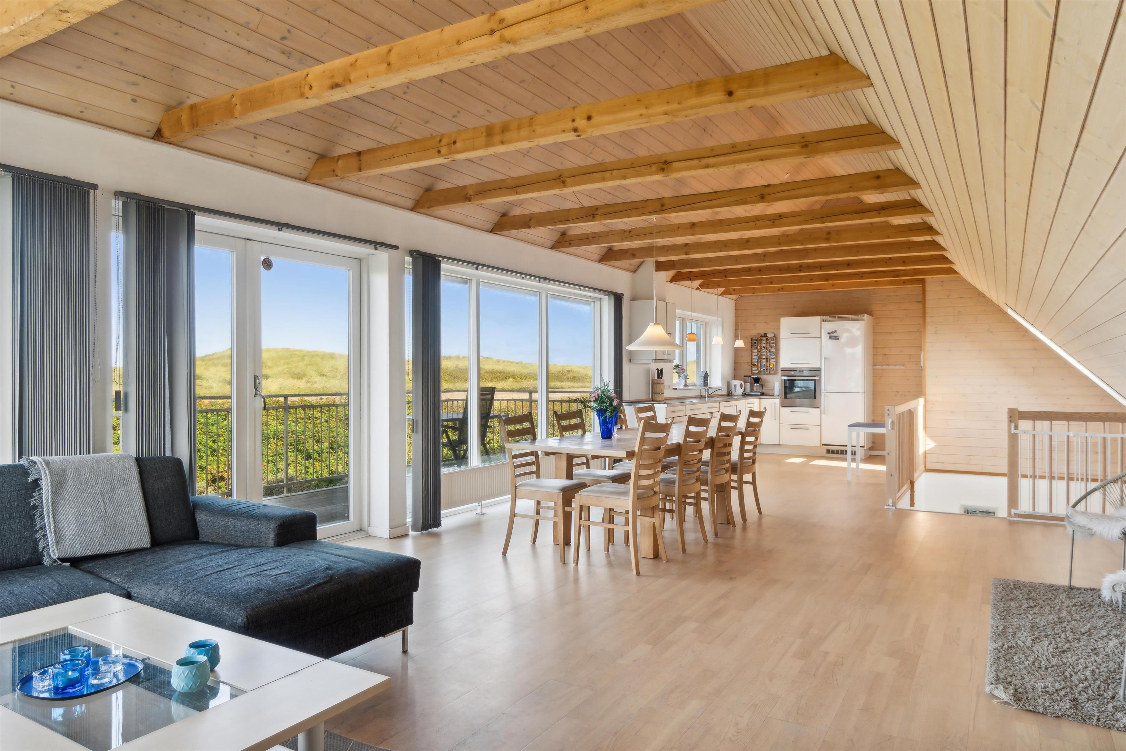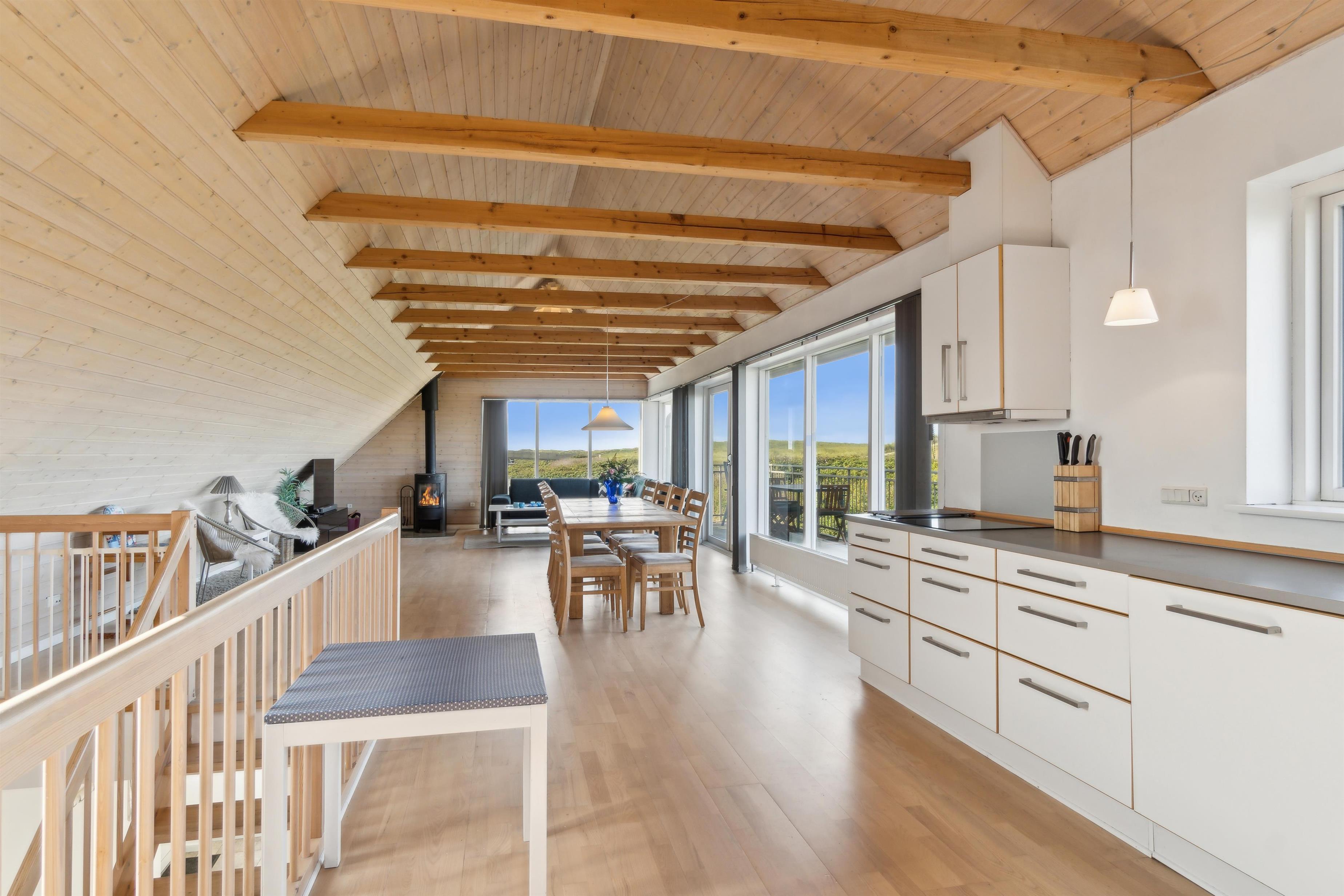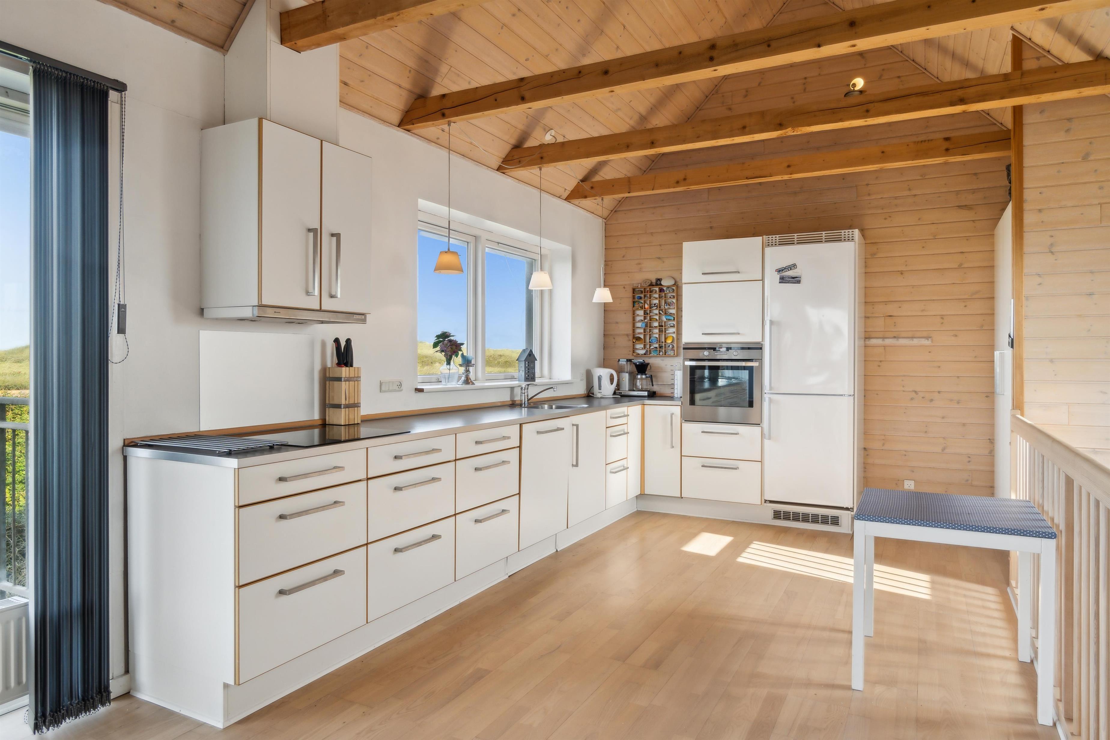 Auf 1. Stock befindet sich eine köstliche Küche/Wohnraum mit Panoramblick über die Dünenlandschaft und die Küstenstrasse. Von hier haben Sie ausgang zur der grosse eingezaunter Balkon wo es ganz fantastisch ist zu sitzen wenn das Wetter mitspielt. Die Küche ist med Cheran-Kochplatten, Abzugshaube, Mikrowelle, eingebauter Ofen, Kühlschrank und Geschirrspüler ausgestattet. Dazu kommt auch ein separaten Gefriertruhe auf 80 L. In der grosse Wohnraum gibt es auch ein Esstisch und von hier haben Sie auch ein sehr guten Blick und eine gemütlicher Couchsgruppe und Smart-TV mit deutschen TV-Programmen, Radio und Chromecast mot den möglichkeit für Streaming-Diensten. Brennofen der für die gemütlicher Stimmung sorgt. Es gibt auch ein CD-Player. Im Parterre finden Sie 4 Schlafräume, 2 Badezimmer und ein Flur. 2 Schlafräume sind mit DB und 2 Schlafraume sind mit 2 B eingerichtet. Beide Badezimmern sind mit Toilette, Dusche und Waschbecken und Fussbodenheizung. Ausserdem gibt es im Haus eine Waschmaschine und Trockner und freiem W-Lan. 2 Haustiere erlaubt. Rauchen ist nicht gestattet. Dieses Haus hat freiem Zutritt zu Wærket in Thyborøn