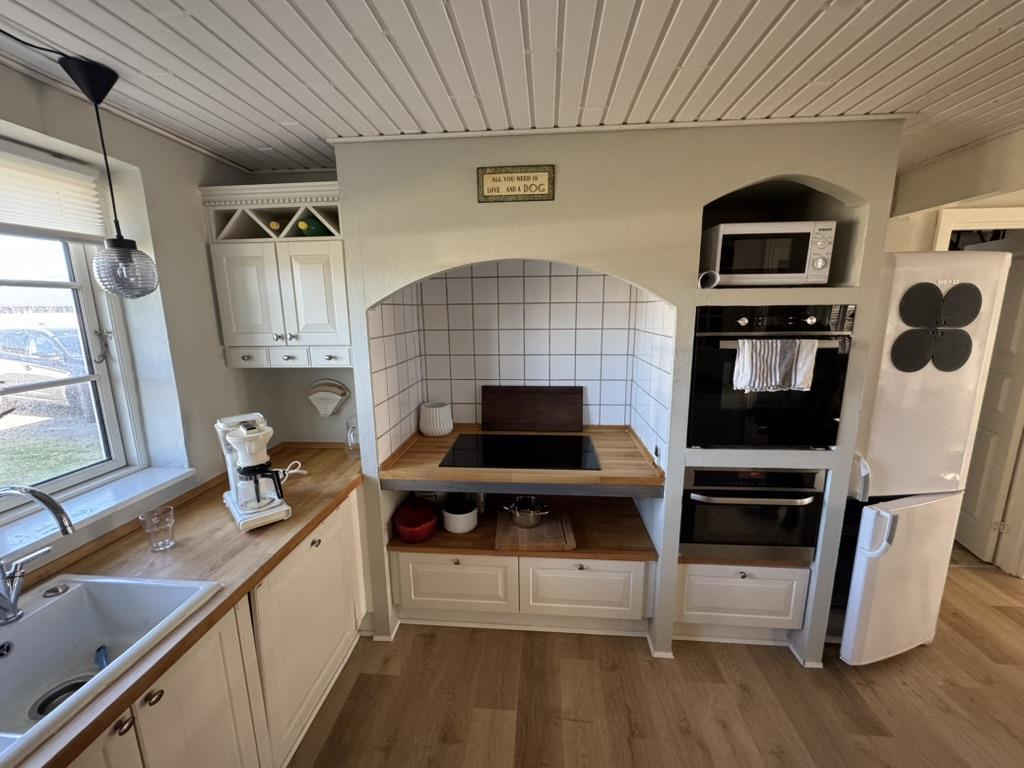 Die Küche ist mit dem Wohnzimmer verbunden und bietet alles, was Sie benötigen. Es gibt einen großen, schönen Esstisch, an dem alle Platz finden.