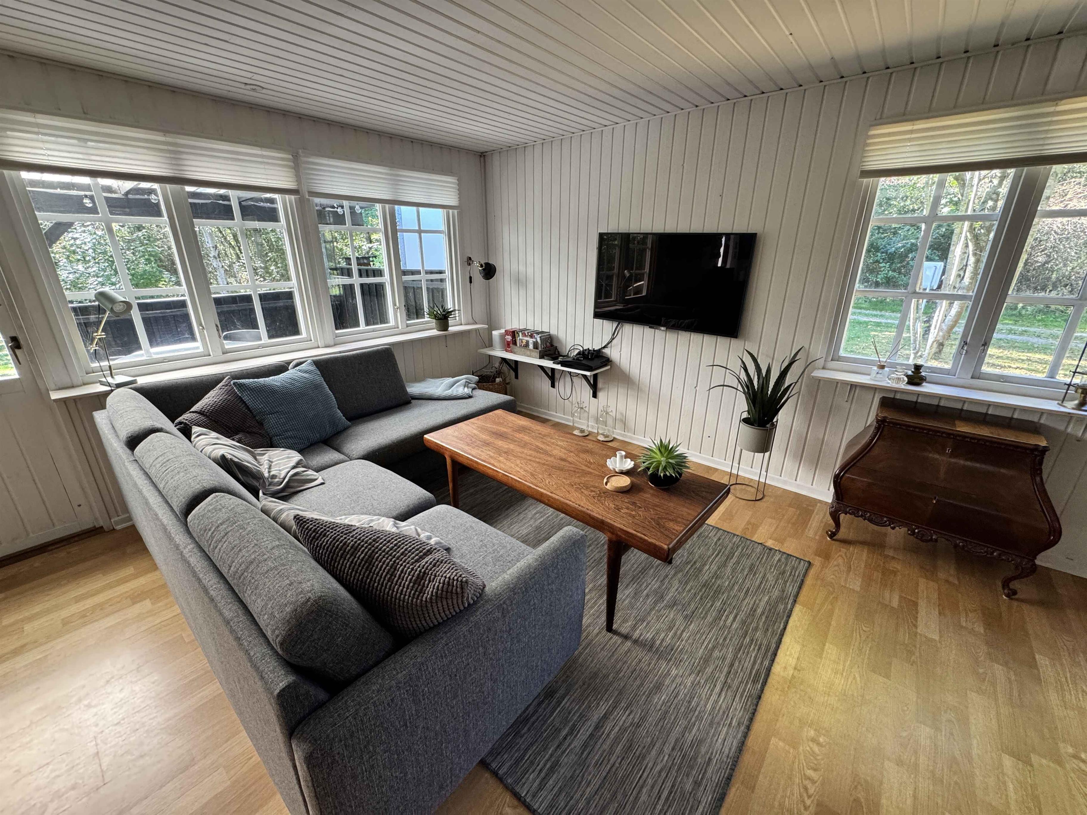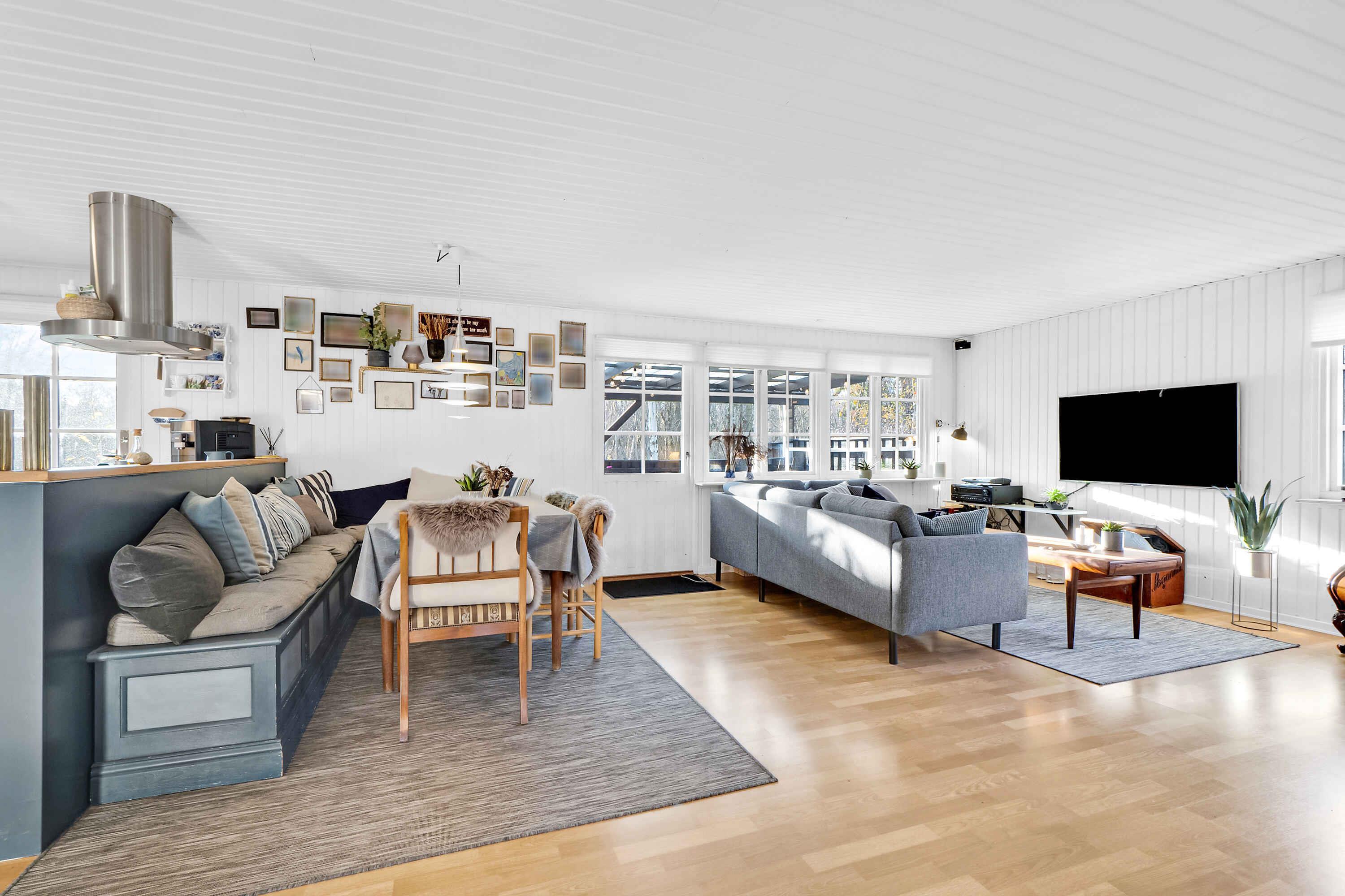 Erleben Sie Casa Sommerlyst auf Thyholm, ein komfortables Ferienhaus mit Garten, Sauna und nur 200 m vom Strand entfernt.