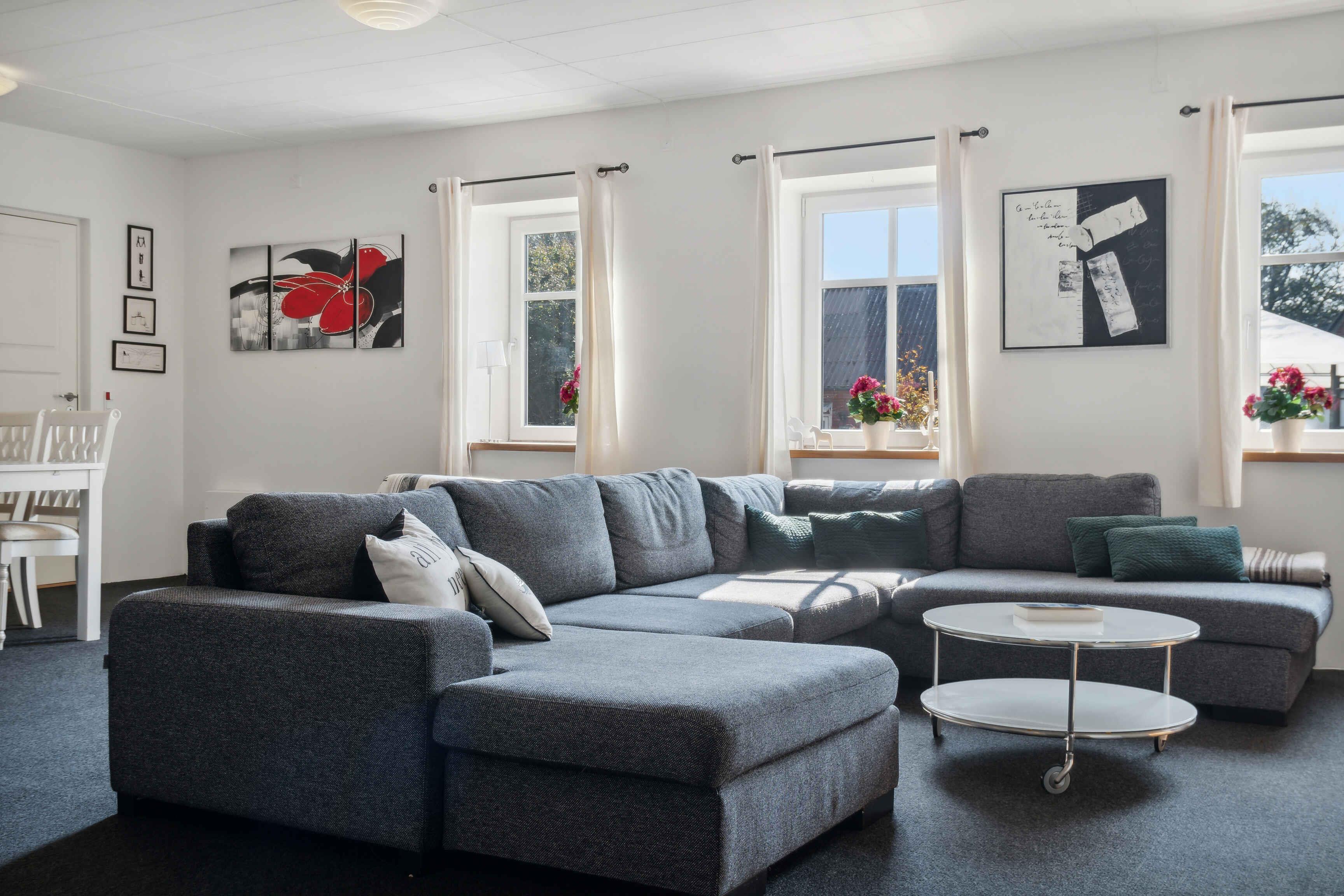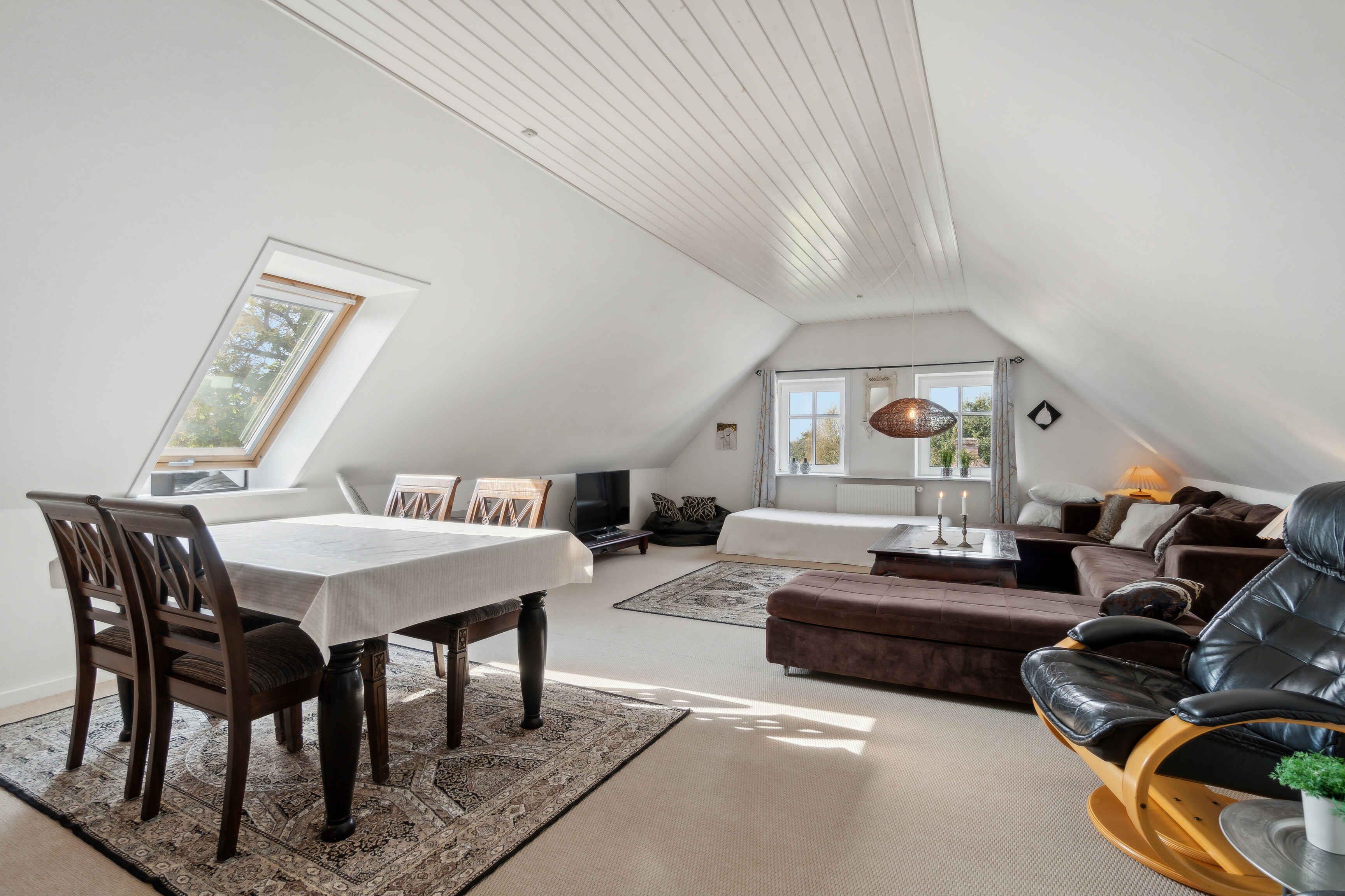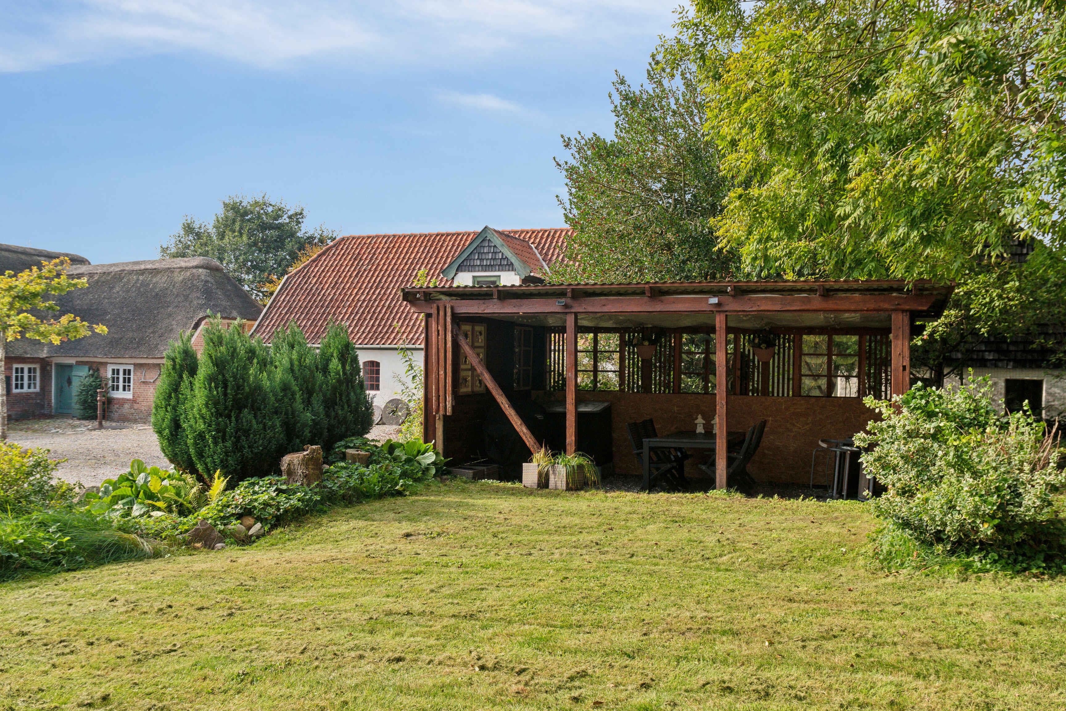 Willkommen in Thyholm, wo dieses Juwel eines Ferienhauses in angenehmer Gehentfernung zum Strand auf Sie wartet. Das Haus bietet viel Platz und gute Einrichtungen, sodass Sie mit einer größeren Gruppe reisen können, ohne auf Privatsphäre oder Komfort verzichten zu müssen. Es gibt Küchen sowohl im Erdgeschoss als auch im ersten Stock, sodass Sie selbst entscheiden können, ob Sie gemeinsam für die ganze Gruppe kochen oder sich aufteilen möchten. Im Aktivitätsraum können die Kinder mit Spielgeräten Spaß haben, und vielleicht möchten Sie die Familie zu Duellen am Tischfußball herausfordern? Im Erdgeschoss befindet sich der große, offene Wohnbereich, wo die Sofas zu gemütlichen Abenden mit Brettspielen oder einem guten Film einladen, wenn ein schöner Ferientag zu Ende geht. Für ein wenig zusätzliche Wellness können Sie im Whirlpool entspannen und zur Ruhe kommen. Zum Haus gehört ein schöner, großer Garten, in dem die Kinder auf dem Trampolin, der Schaukel oder im Sandkasten stundenlang spielen können, während Sie sich mit einem guten Buch auf einem Liegestuhl entspannen. An schönen Sommerabenden können Sie den Grill anheizen und die Lieblingsgerichte der Familie mit einem kühlen Getränk in der Hand zubereiten. Im Haus stehen zwei Fahrräder zur Verfügung, die Sie für Ausflüge nutzen können. Ein Urlaub am Limfjord bedeutet unvergessliche Naturerlebnisse, fantastische Landschaften, Badespaß und zahlreiche Aktivitätsmöglichkeiten für Jung und Alt. Mit flachem Wasser und sanften Wellen sind die Strände an der Venø Bucht besonders familienfreundlich. An der Handbjerg Marina gibt es auch die Möglichkeit zu surfen, und das Gebiet eignet sich ideal für Kajaktouren oder Stand-up-Paddling. Unternehmen Sie auch Rad- und Wandertouren durch eine vielfältige Natur mit Wäldern, Seen und Heide. Die Geddal Strandenge ist etwas ganz Besonderes. Vergessen Sie nicht, Venø zu besuchen, das mit einer abwechslungsreichen Natur, einer reichen Vogelwelt und gemütlichen kleinen Galerien beeindruckt. Freuen Sie sich auf einen Urlaub, von dem Sie nicht nach Hause zurückkehren möchten, mit diesem fantastischen Haus als Basis.