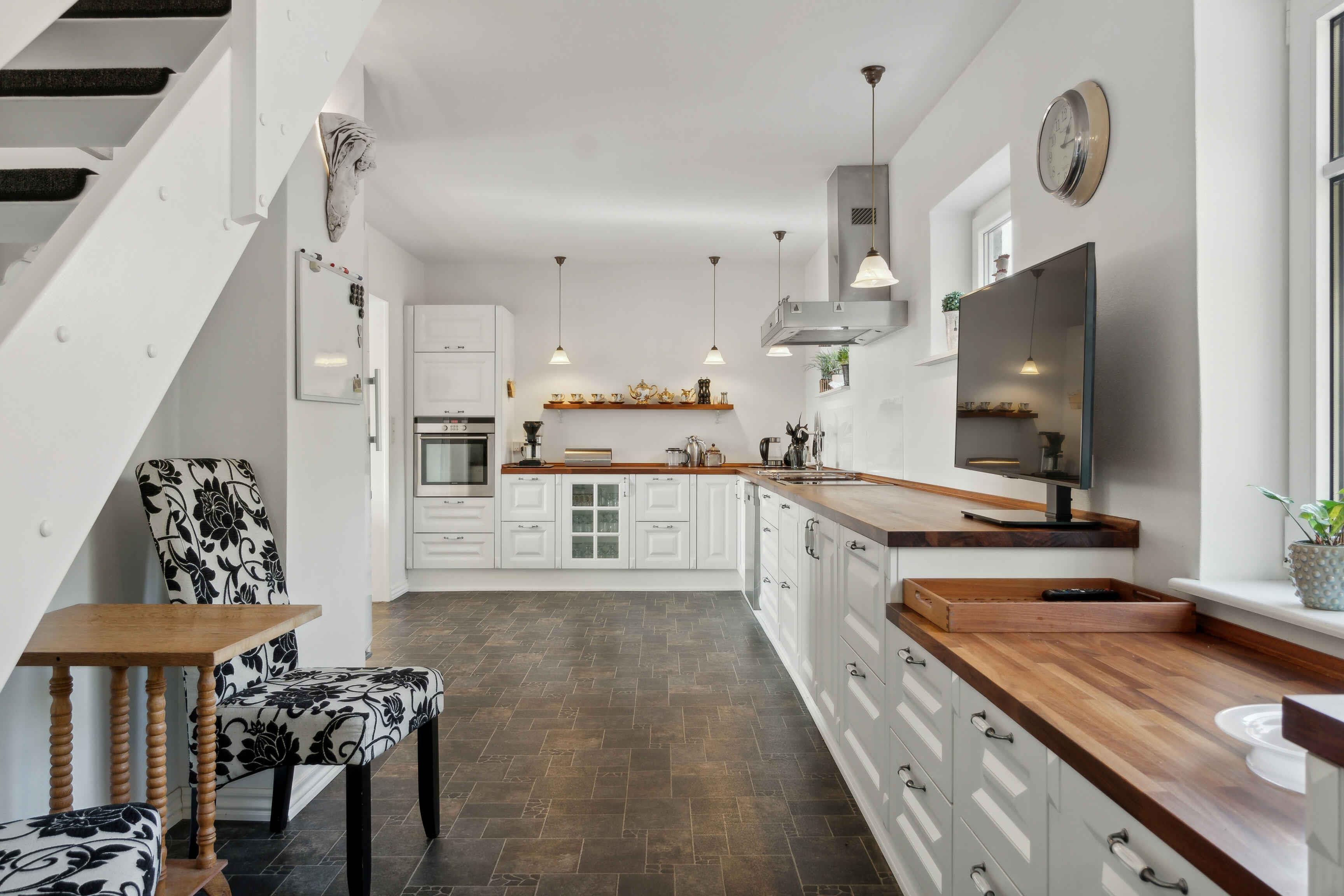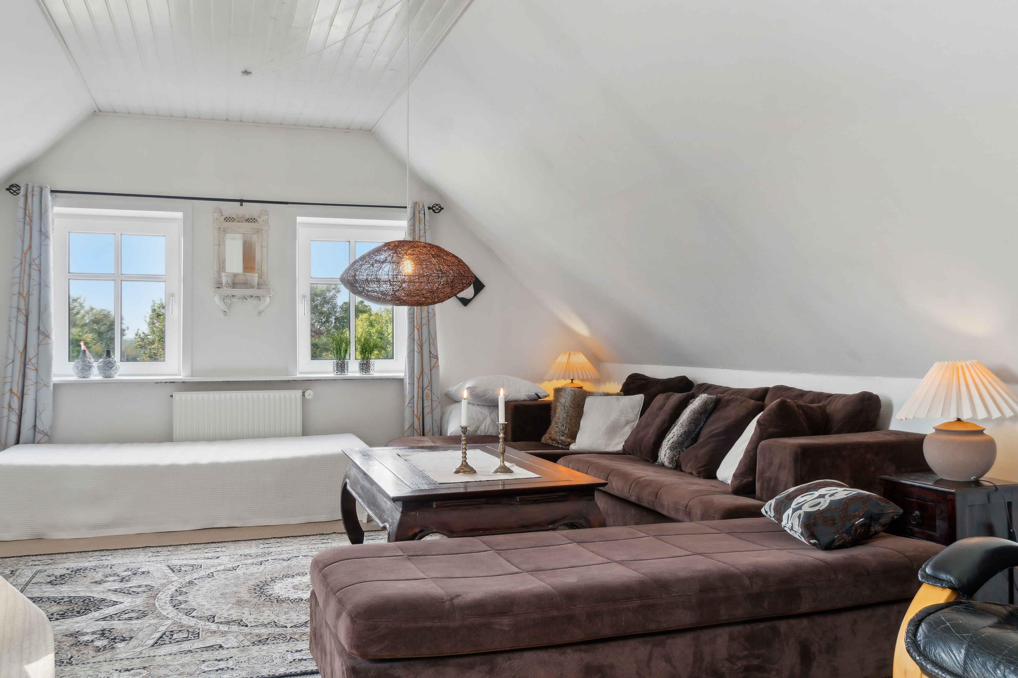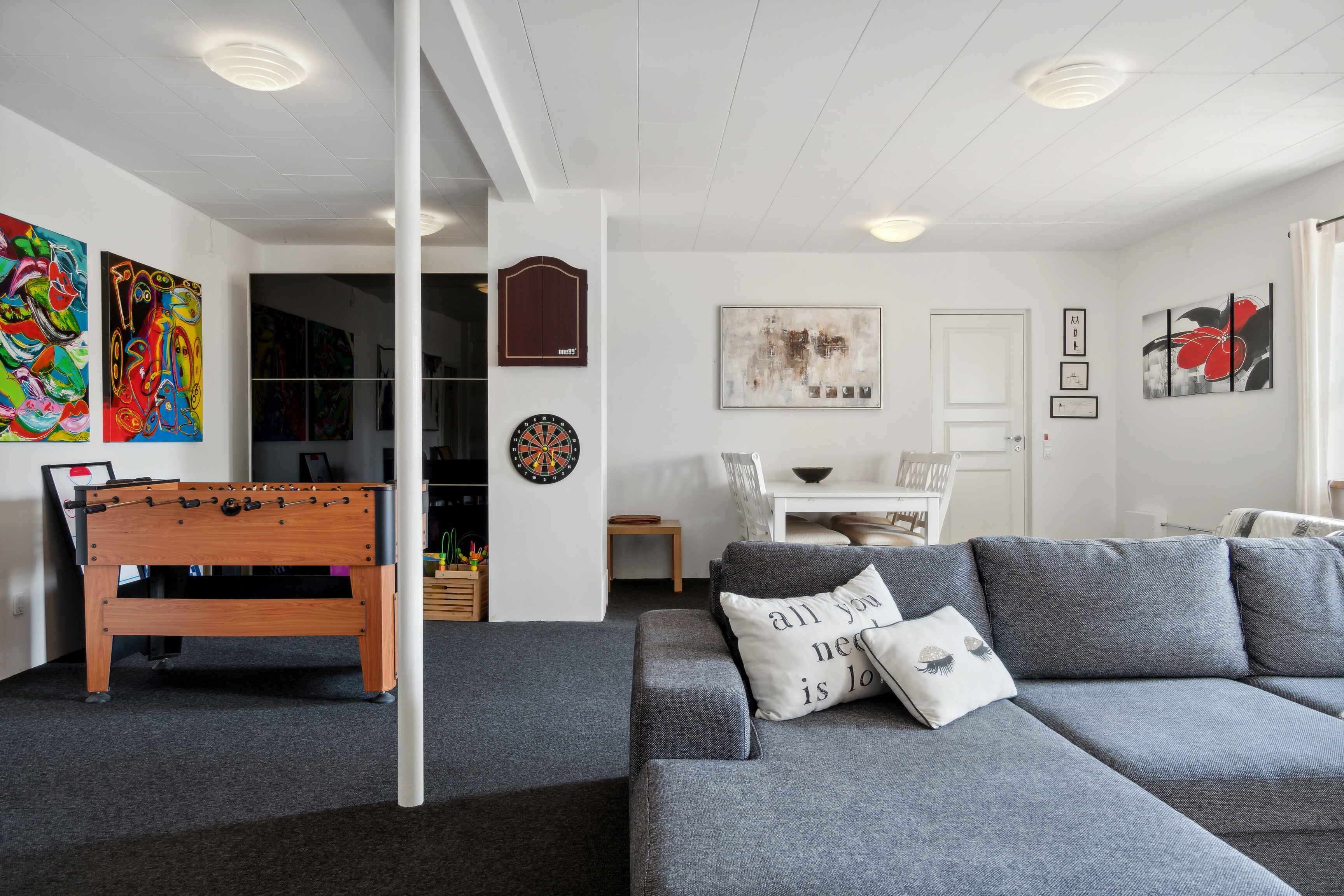 Willkommen in Thyholm, wo dieses Juwel eines Ferienhauses in angenehmer Gehentfernung zum Strand auf Sie wartet. Das Haus bietet viel Platz und gute Einrichtungen, sodass Sie mit einer größeren Gruppe reisen können, ohne auf Privatsphäre oder Komfort verzichten zu müssen. Es gibt Küchen sowohl im Erdgeschoss als auch im ersten Stock, sodass Sie selbst entscheiden können, ob Sie gemeinsam für die ganze Gruppe kochen oder sich aufteilen möchten. Im Aktivitätsraum können die Kinder mit Spielgeräten Spaß haben, und vielleicht möchten Sie die Familie zu Duellen am Tischfußball herausfordern? Im Erdgeschoss befindet sich der große, offene Wohnbereich, wo die Sofas zu gemütlichen Abenden mit Brettspielen oder einem guten Film einladen, wenn ein schöner Ferientag zu Ende geht. Für ein wenig zusätzliche Wellness können Sie im Whirlpool entspannen und zur Ruhe kommen. Zum Haus gehört ein schöner, großer Garten, in dem die Kinder auf dem Trampolin, der Schaukel oder im Sandkasten stundenlang spielen können, während Sie sich mit einem guten Buch auf einem Liegestuhl entspannen. An schönen Sommerabenden können Sie den Grill anheizen und die Lieblingsgerichte der Familie mit einem kühlen Getränk in der Hand zubereiten. Im Haus stehen zwei Fahrräder zur Verfügung, die Sie für Ausflüge nutzen können. Ein Urlaub am Limfjord bedeutet unvergessliche Naturerlebnisse, fantastische Landschaften, Badespaß und zahlreiche Aktivitätsmöglichkeiten für Jung und Alt. Mit flachem Wasser und sanften Wellen sind die Strände an der Venø Bucht besonders familienfreundlich. An der Handbjerg Marina gibt es auch die Möglichkeit zu surfen, und das Gebiet eignet sich ideal für Kajaktouren oder Stand-up-Paddling. Unternehmen Sie auch Rad- und Wandertouren durch eine vielfältige Natur mit Wäldern, Seen und Heide. Die Geddal Strandenge ist etwas ganz Besonderes. Vergessen Sie nicht, Venø zu besuchen, das mit einer abwechslungsreichen Natur, einer reichen Vogelwelt und gemütlichen kleinen Galerien beeindruckt. Freuen Sie sich auf einen Urlaub, von dem Sie nicht nach Hause zurückkehren möchten, mit diesem fantastischen Haus als Basis.