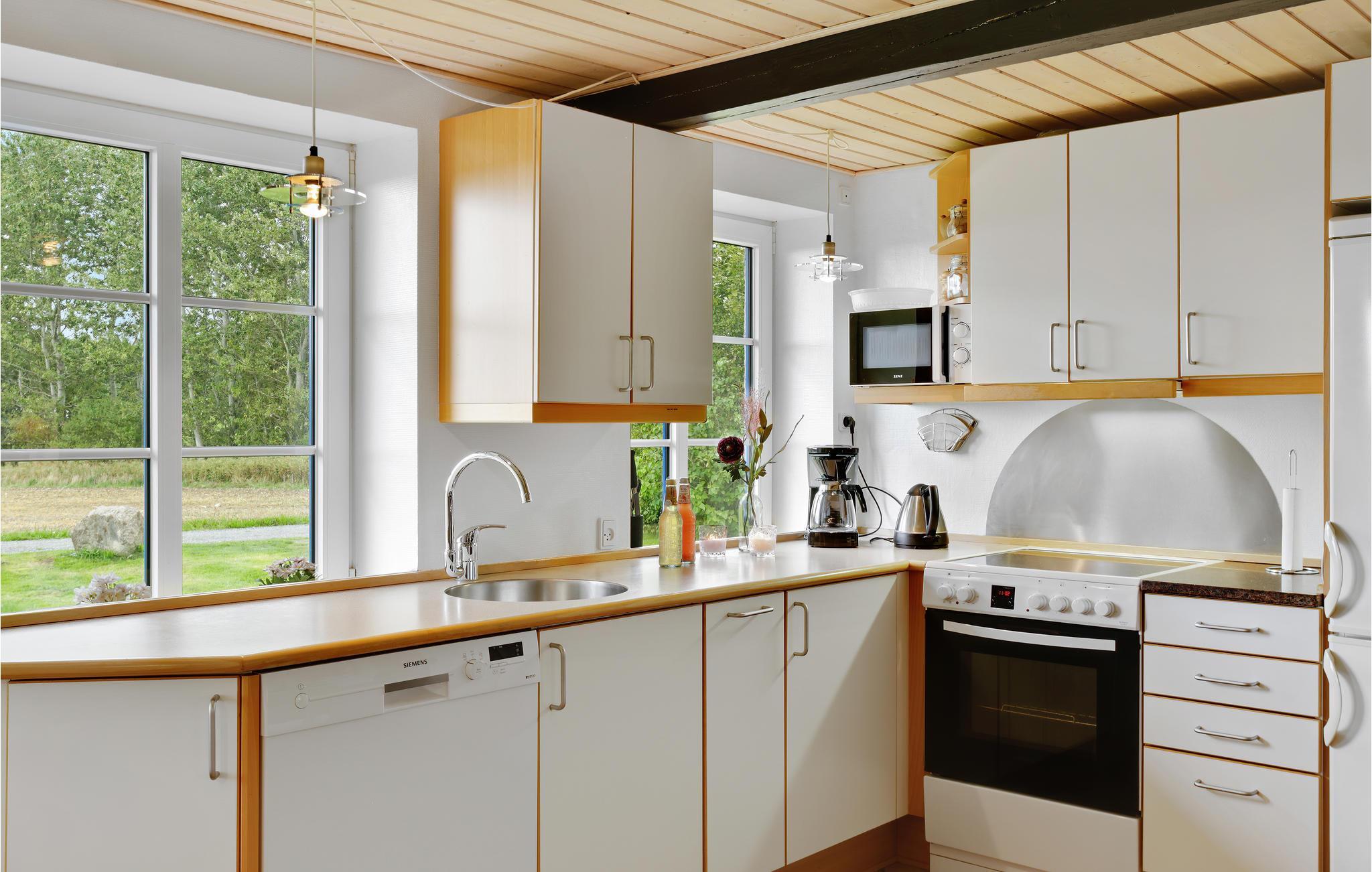 Geräumiges Ferienhaus mit Aussicht auf offene Felder. Schöne Einrichtung und Terrasse für viele, vergnügliche Urlaubsstunden. Das Haus liegt ruhig und ländlich und bietet im Garten massenhaft Platz für Ballspiele. Im Inneren finden Sie 3 gute Schlafzimmer mit komfortablen Möbeln. Die Küche ist gut ausgestattet und gut für ausgedehnte Ferienmahlzeiten geeignet. Schönes Badezimmer mit Bodenheizung. Bornholm wird auch die Perle der Ostsee genannt. Im Gegensatz zum Rest von Dänemark gibt es hier Klippen und Wälder mit Wasserfällen und Granitfelsen. Idyllische Orte und Sandstrände erwarten Sie hier auch. Neben der Natur Bornholms gibt es Kunst und Kultur zu sehen. Z. B. die typischen Rundkirchen, oder die größte Ruine Skandinaviens Hammershus. Auch Christiansø kann auf eine dramatische Geschichte zurückblicken. Auch Kunsthandwerker laden Sie überall auf der Insel in offene Werkstätten ein.