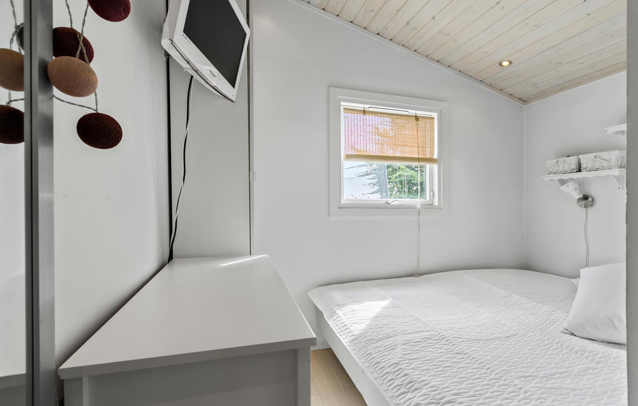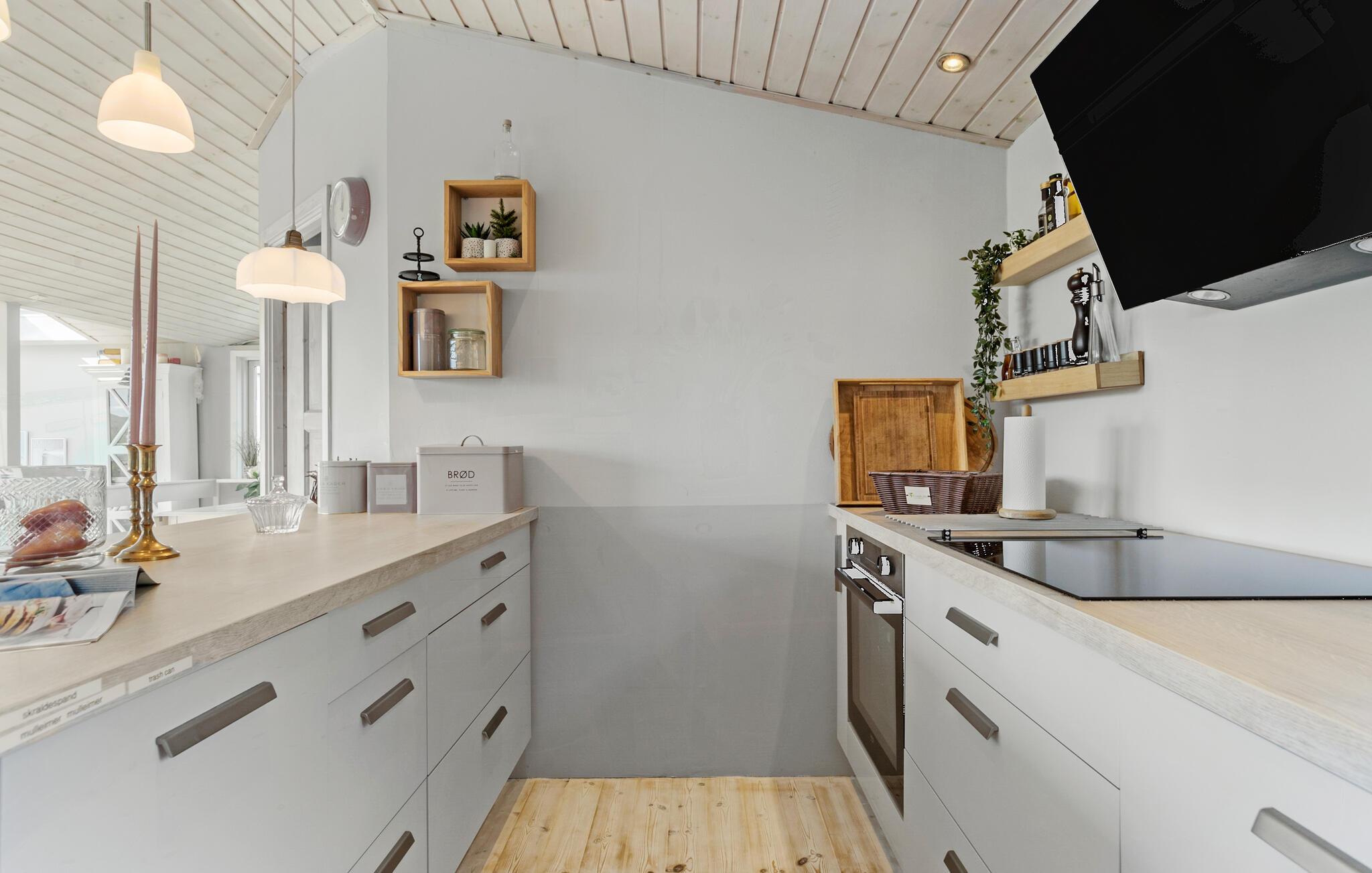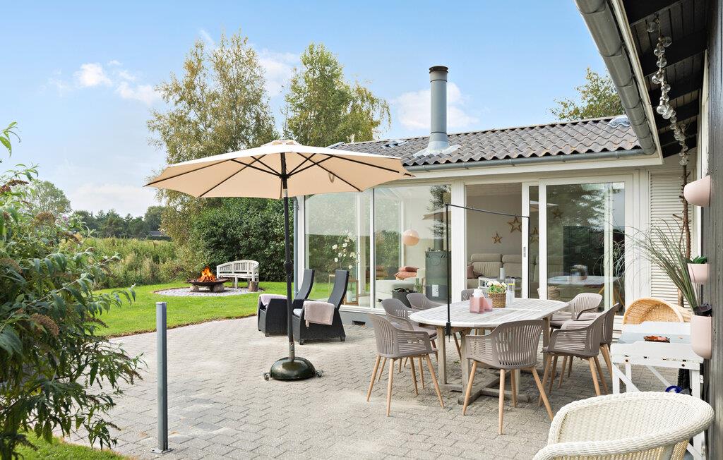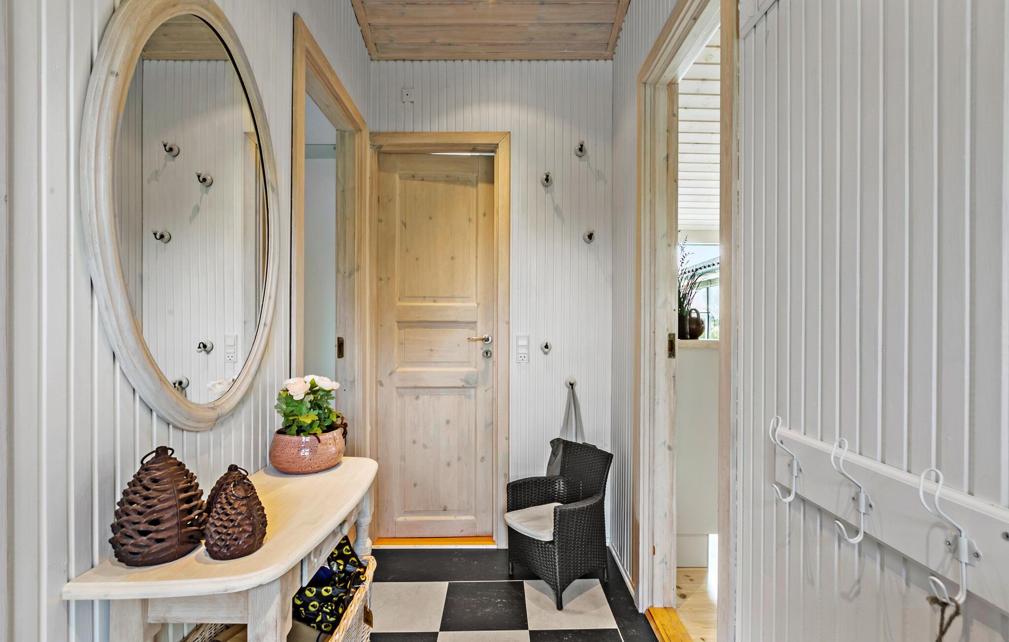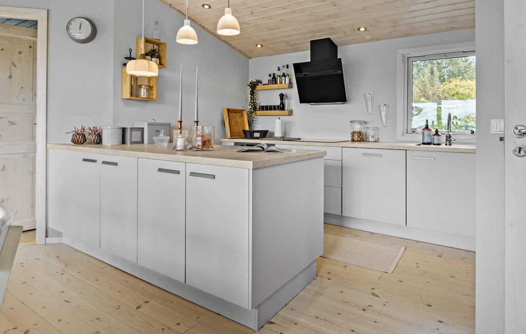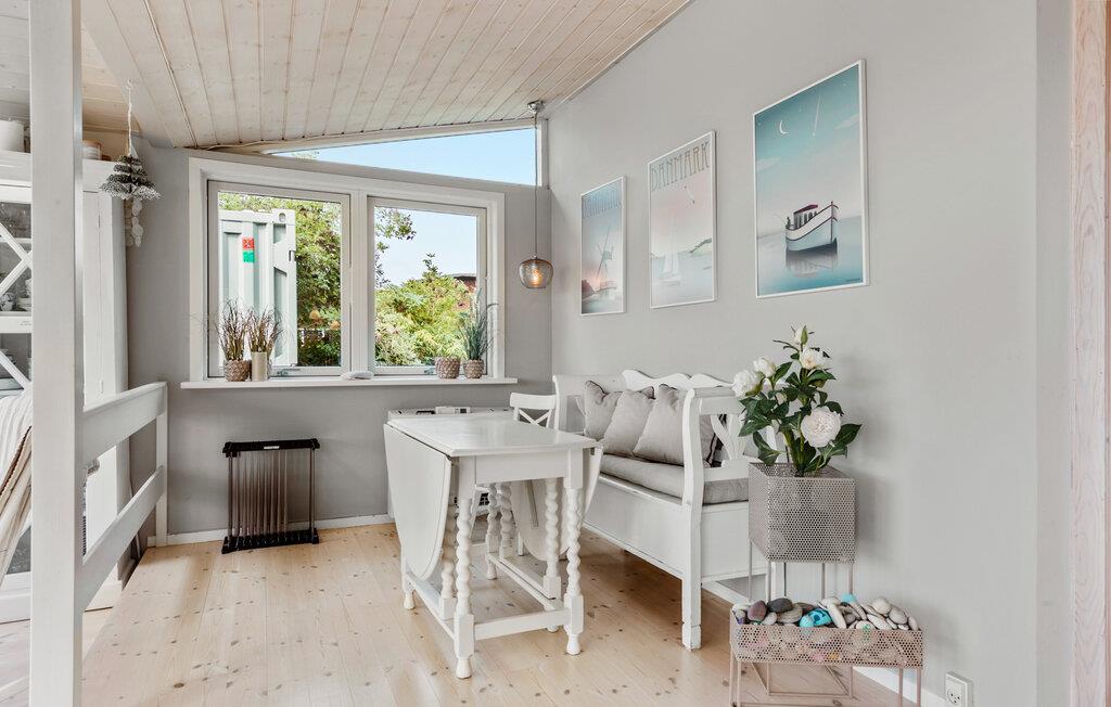 Ihr charmantes und gemütliches Ferienhaus lädt Sie ein, die herrliche Natur und vielseitigen Freizeitmöglichkeiten der Umgebung von Tinkerup Strand zu erleben. Beim Betreten des Hauses werden Sie sich sofort willkommen fühlen, denn der helle und einladende Wohnbereich strahlt eine behagliche Atmosphäre aus. Machen Sie es sich gemeinsam mit der Familie vor dem Kaminofen gemütlich und verbringen Sie entspannte Stunden auf dem komfortablen Sofa. Der geräumige Essbereich mit Blick in den grünen Garten ist ideal für gemeinsame Mahlzeiten und bietet sich auch für unterhaltsame Spieleabende mit Brett- und Kartenspielen an.