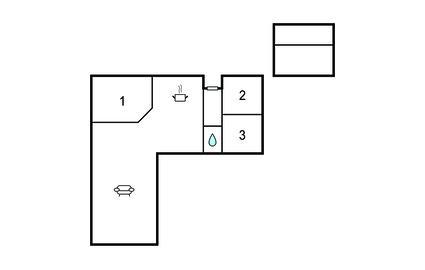 Badezimmer (nr. 1) - WC. Warmes und kaltes Wasser. Dusche
