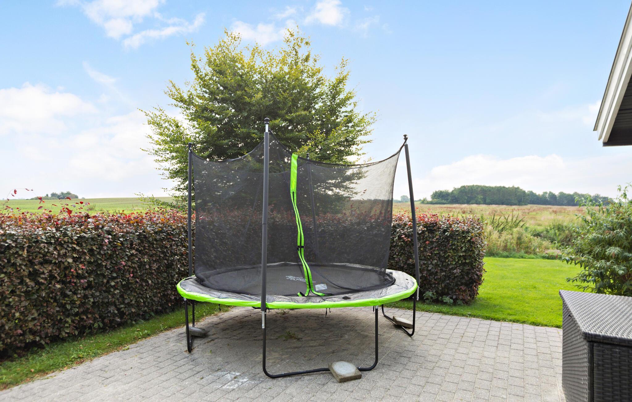 Auf Ihrer großzügigen Terrasse können Sie leckere Grillabende veranstalten, unter dem Sonnenschirm speisen und auf den Sitzgelegenheiten die Seele baumeln lassen. Ihre Kinder können sich währenddessen auf dem Trampolin austoben. Die Feuerstelle im Garten verspricht gemütliche und gesellige Stunden am Abend.
