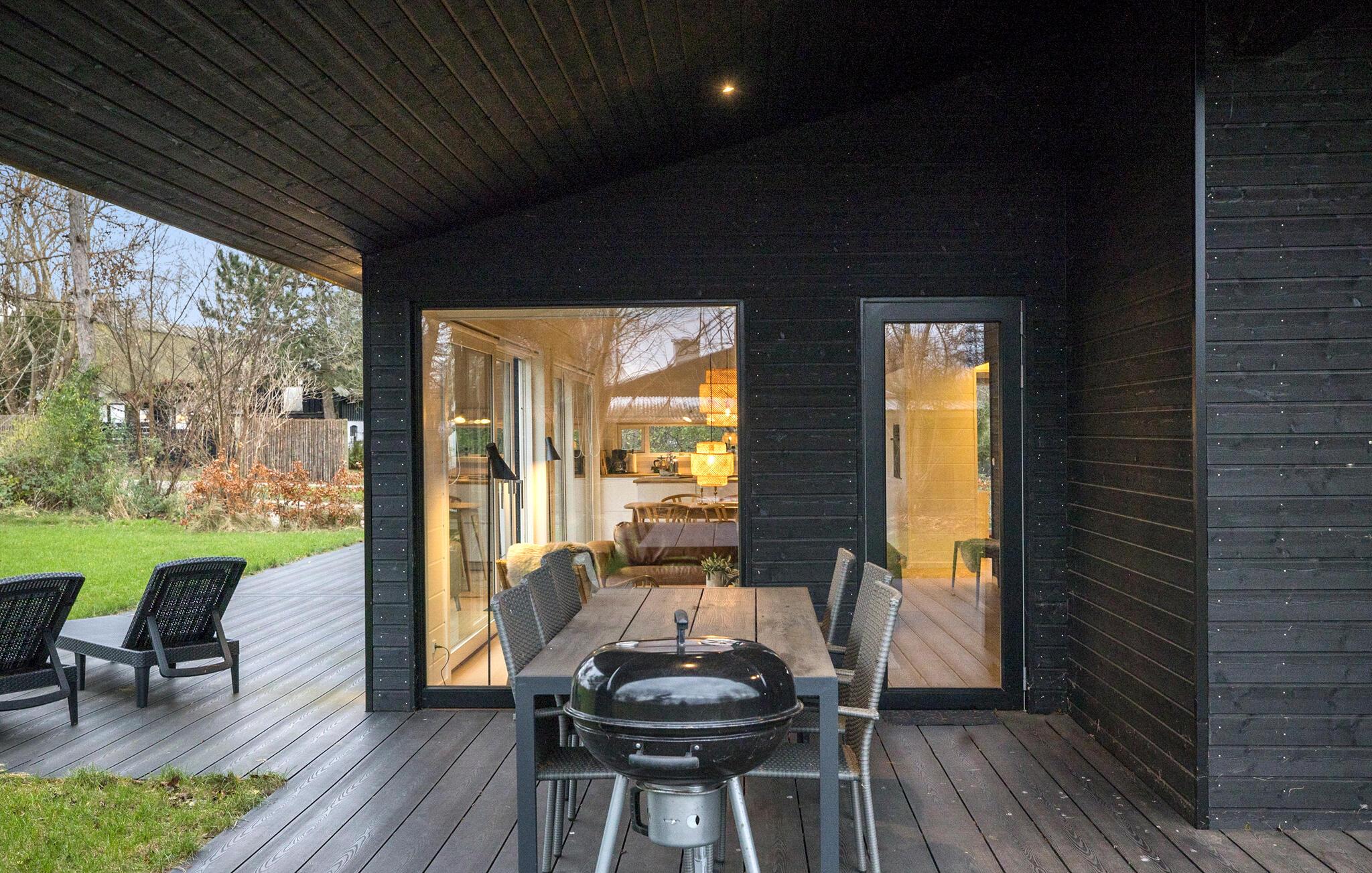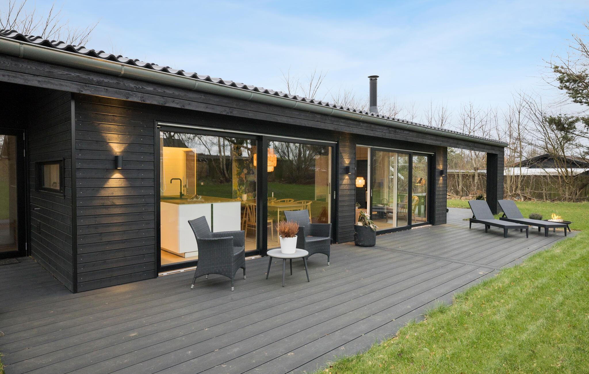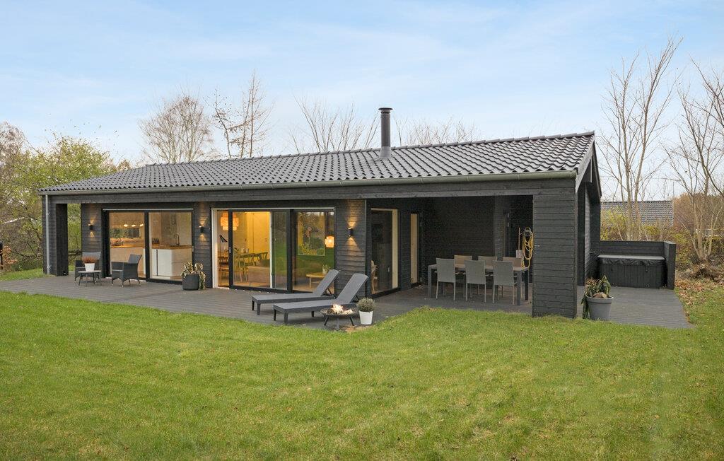 Modernes Ferienhaus mit Kamin, Garten, Grillplatz und Whirlpool nahe Tinkerup Strand.
