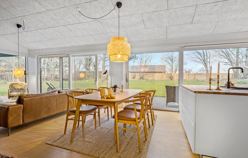 Treten Sie ein und lassen Sie sich von der geschmackvollen Einrichtung dieses modernen Ferienhauses begeistern. Zelebrieren Sie Ihre Mahlzeiten im offenen Essbereich mit Blick ins Grüne und gönnen Sie sich harmonische Abende am Kamin im einladenden Wohnzimmer. Lassen Sie sich in die bequemen Sessel fallen und widmen Sie sich einem guten Buch, für das Sie im Alltag keine Zeit finden.