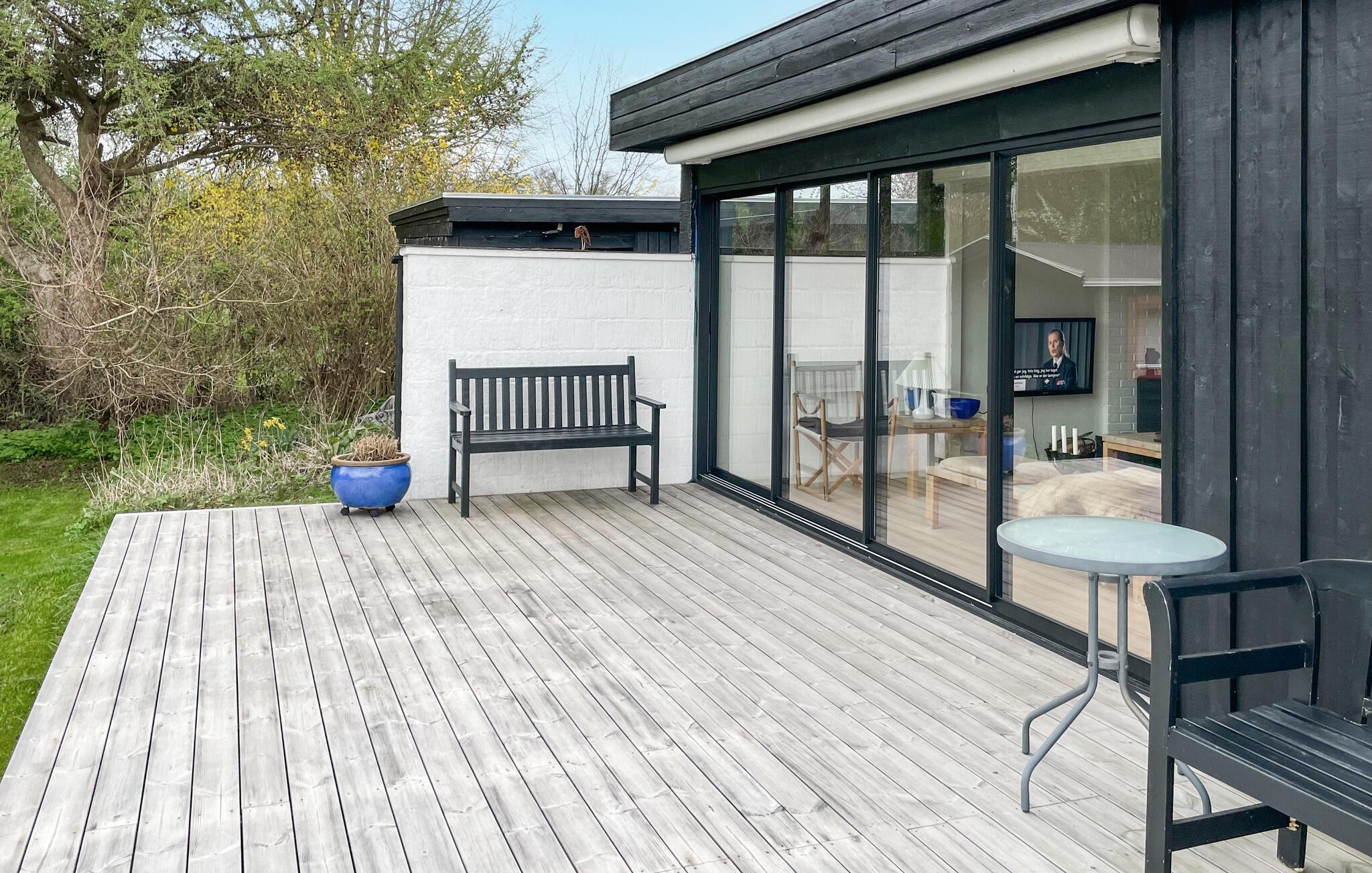 Gemütliches Ferienhaus nahe Tinkerup Strand mit Garten, Kamin und moderner Ausstattung für entspannte Urlaubstage.