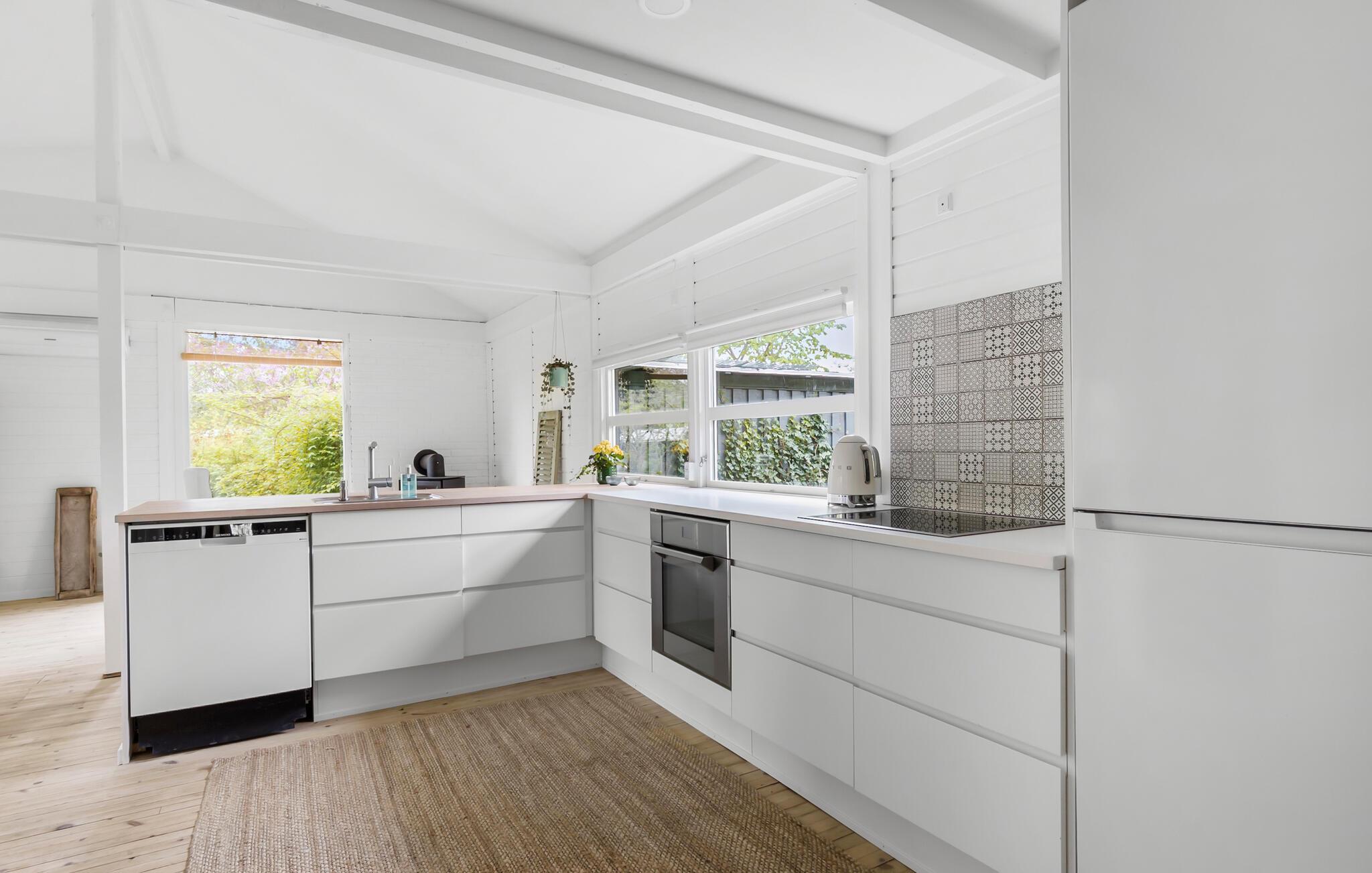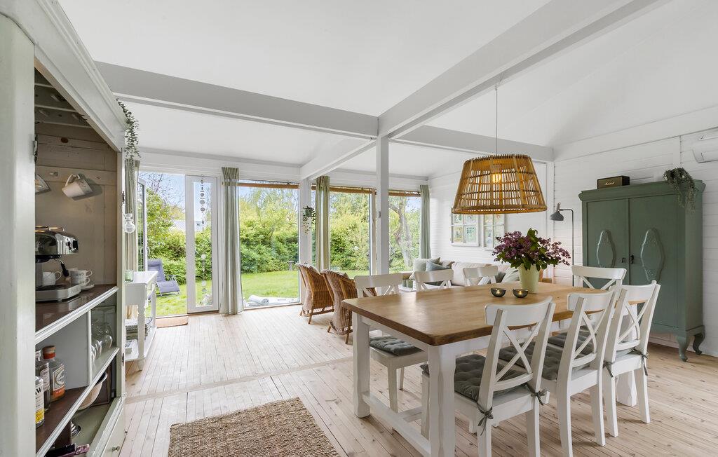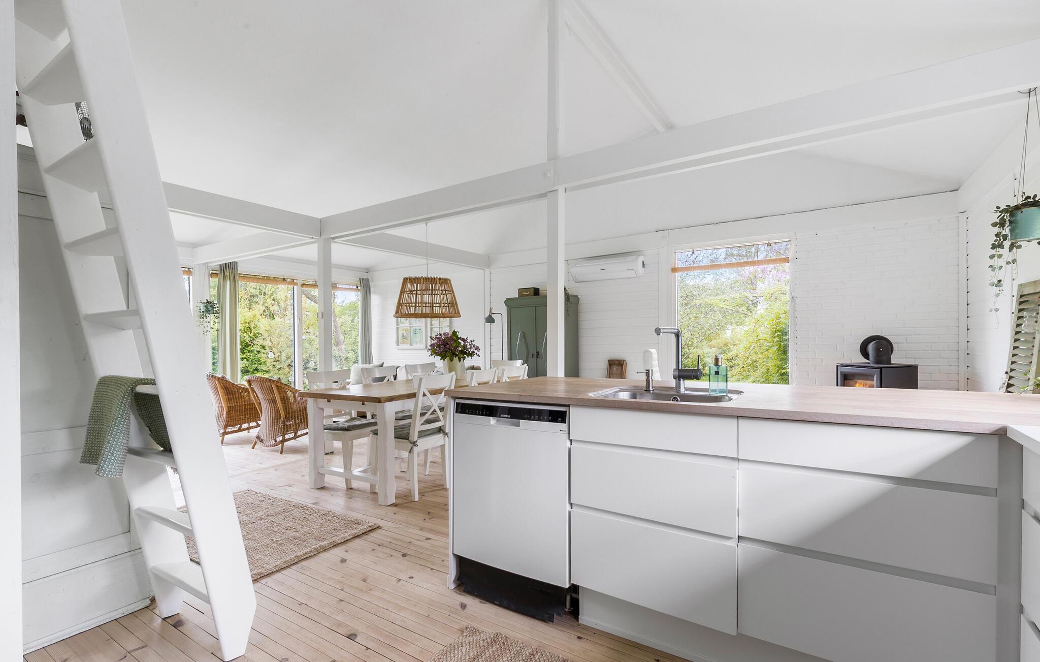 Im idyllischen Norden der dänischen Insel Seeland gelegen, begrüßt Sie Ihr Ferienhaus mit klassischem dänischem Ferienhaus-Charme. Beginnen Sie Ihren Tag in der gut ausgestatteten, offenen Küche, wo Sie sich einen frischen Morgenkaffee und ein reichhaltiges Frühstück zubereiten können. Genießen Sie Ihr Frühstück am einladenden Esstisch, während das Licht durch die Fenster fällt und den Raum mit einer warmen und angenehmen Atmosphäre erfüllt. Der offene Wohnbereich bietet auf dem bequemen Sofa viel Platz zum Entspannen, und das flackernde Kaminfeuer sorgt für eine gemütliche Stimmung. Planen Sie hier Ihre Tagesausflüge, erzählen Sie sich spannende Geschichten oder entspannen Sie bei einem guten Buch.