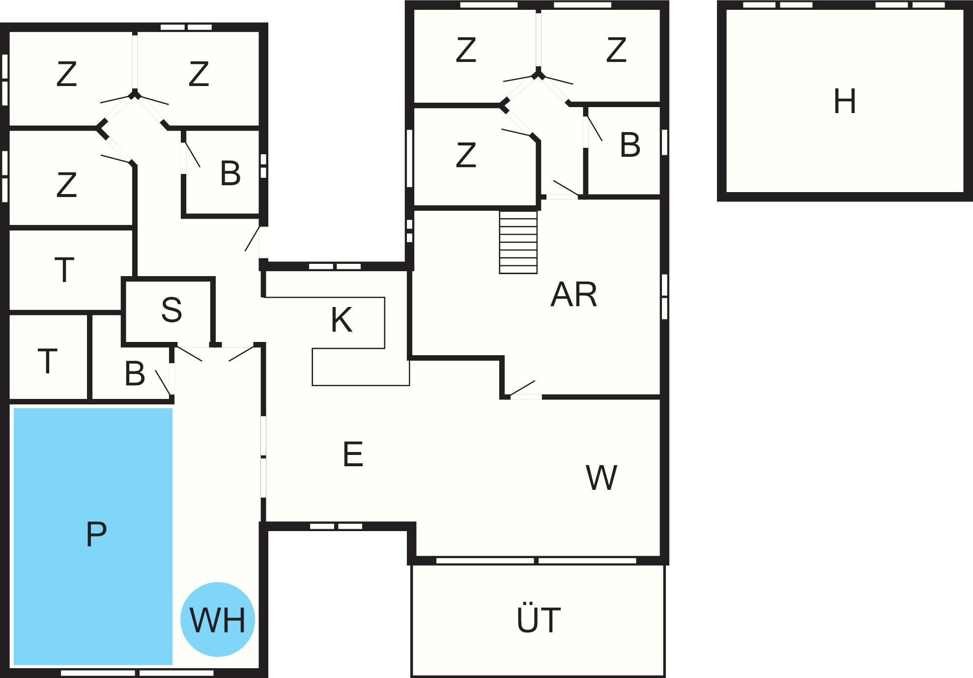 Das Haus hat einen Poolbereich mit Sauna und einem großen, eingebauten Whirlpool mit Rückenmassage, Seitenmassage und Handbrause. Der Ess-/Aufenthaltsbereich wurde ansprechend mit Flachbild-TV, PlayStation, Sofaecke und Holzofen eingerichtet. Auf der anderen Seite des zentral gelegenen Ess-/Aufenthaltsbereich gelangen Sie in den Aktivitätsraum, wo man Dart, Poolbillard oder Tischtennis spielen kann. Sowohl der Pool- als auch der Aktivitätsraum sind ein guter Sammelpunkt für die ganze Familie.