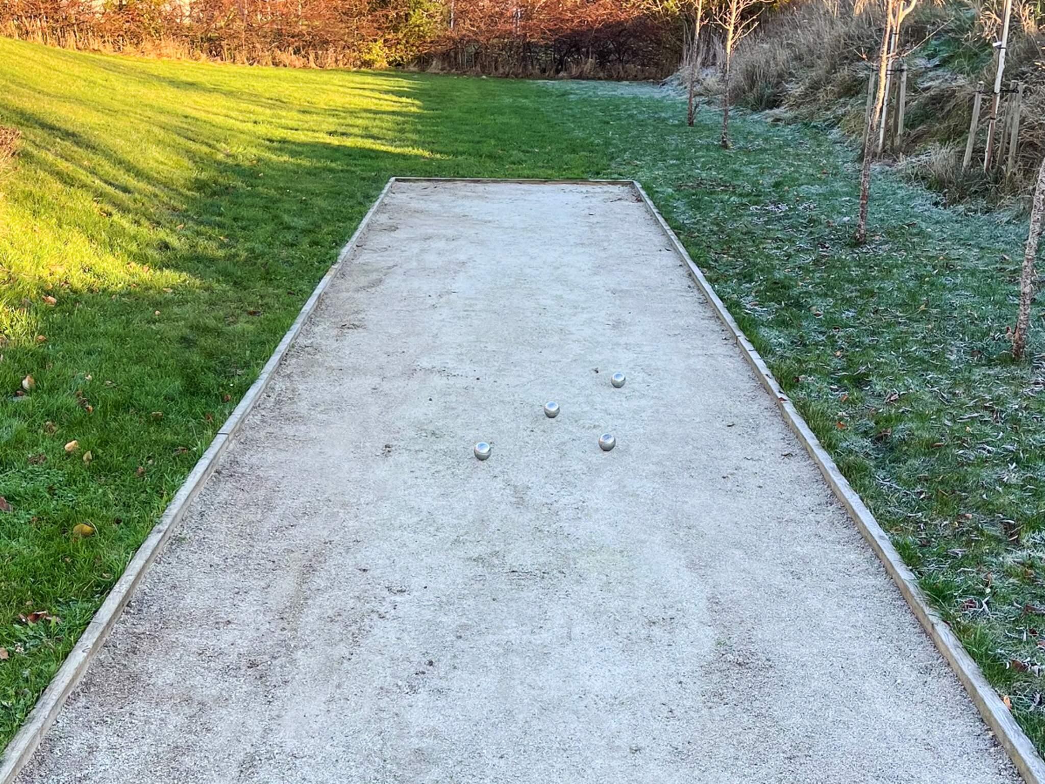Auf dem großen Grundstück, das das Haus umgibt, gibt es auch einen Sandkasten und Schaukeln für die kleinsten Gäste. Die Erwachsenen können es sich währenddessen auf den Sonnenliegen auf der Terrasse bequem machen.