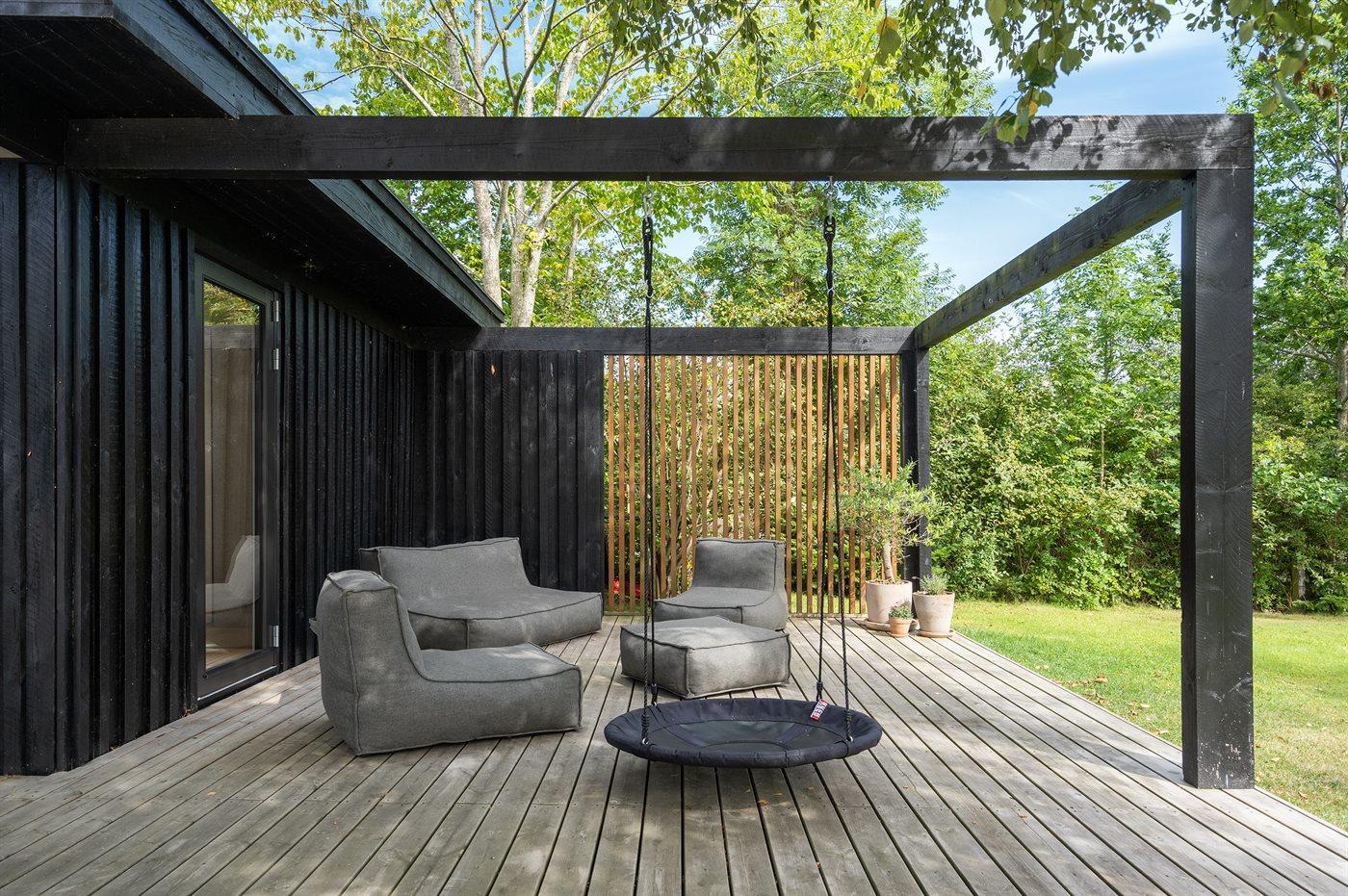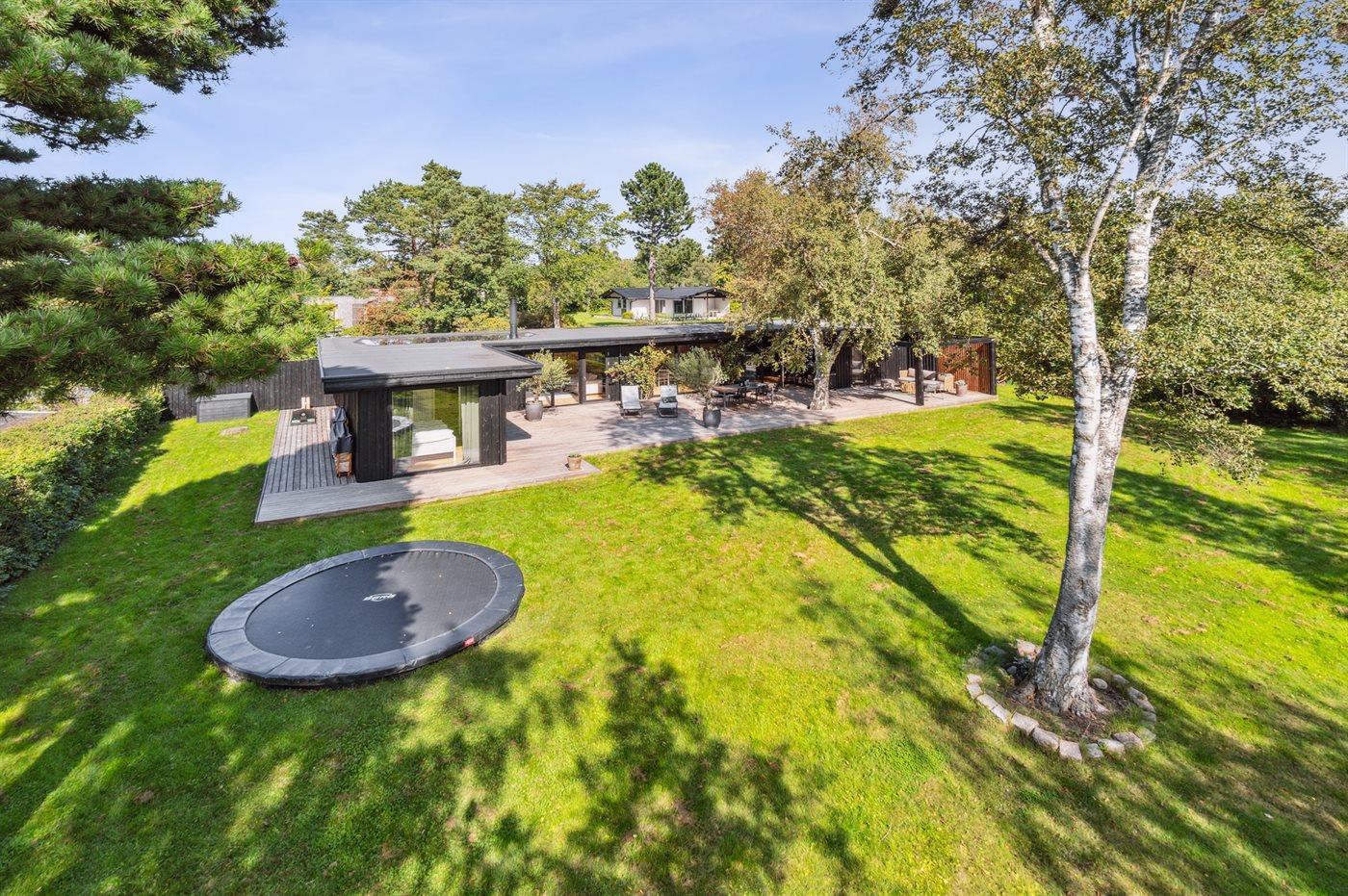 Die Ferienunterkunft liegt auf einem 1200 m² großen Gartengrundstück. Die Entfernung zum Meer beträgt 1000 m. Die Entfernung zu einem See beträgt 5500 m. Die nächste Einkaufsmöglichkeit liegt 1800 m entfernt. In einem Abstand von 9600 m gibt es einen Golfplatz. Es steht ein 130 m² Terrassenareal zur Verfügung. Schaukel. Trampolin.Lagerfeuerstelle. Pizzaofen. Außensauna. Cold water tub. Es steht ein Grill zur Verfügung. Es ist ein Ladestecker für Elektroautos installiert. Ladestecker Typ 2. Mit einer Ladeleistung von 11 kW. Parkplatz auf dem Grundstück.
