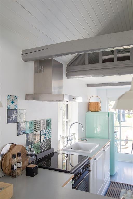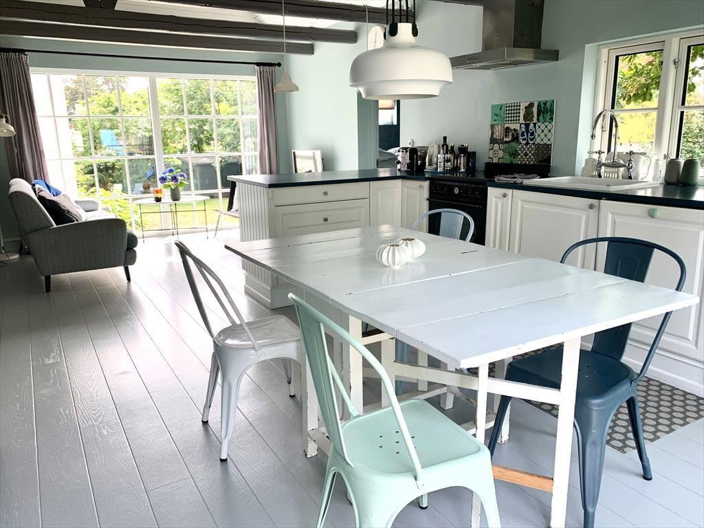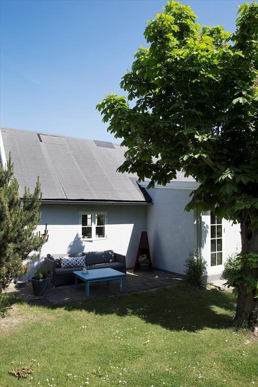 Der Garten ist eine kleine grüne Oase mitten in Tisvildeleje. Hier findest du eine charmante Lounge-Ecke mit einem bequemen Sofa, wo du deinen Morgenkaffee in Ruhe genießen kannst, während die Vögel zwitschern. Auf der Terrasse kannst du lange Sommerabende mit einem Abendessen unter freiem Himmel verbringen, während der Duft von gegrillten Köstlichkeiten in der Luft liegt. Die liebevoll gestaltete Umgebung und die entspannte Atmosphäre laden dazu ein, die Seele baumeln zu lassen und den Urlaub in vollen Zügen zu genießen.
